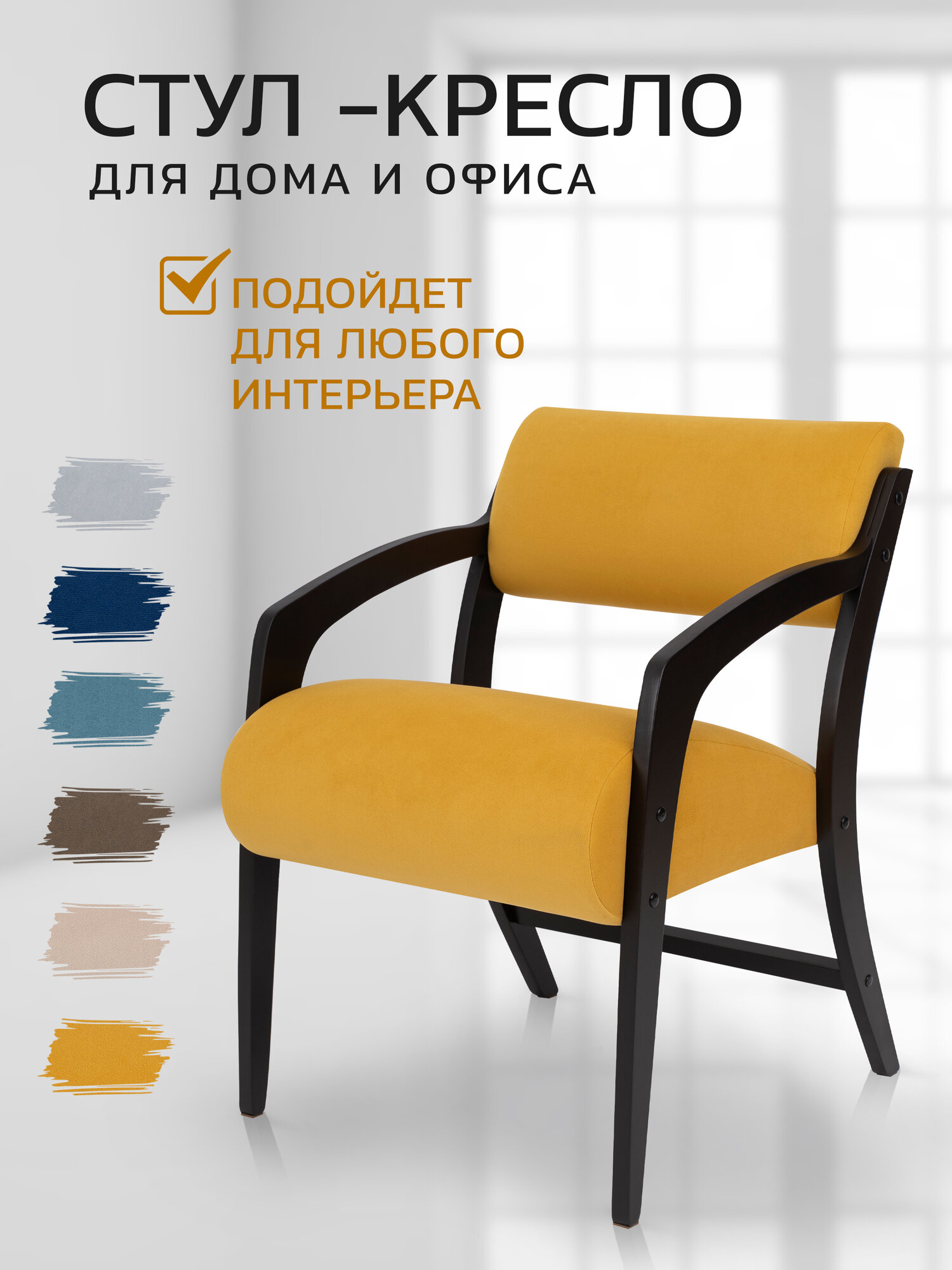 Стул Кресло-стул Комфорт мягкий с подлокотниками, 1 шт горчичный