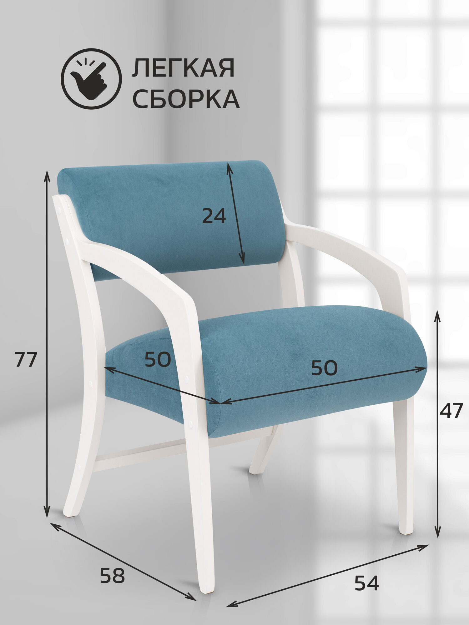Купить Кресло-стул Комфорт для дома и дачи в ткани велюр, цвет бирюза / молочный