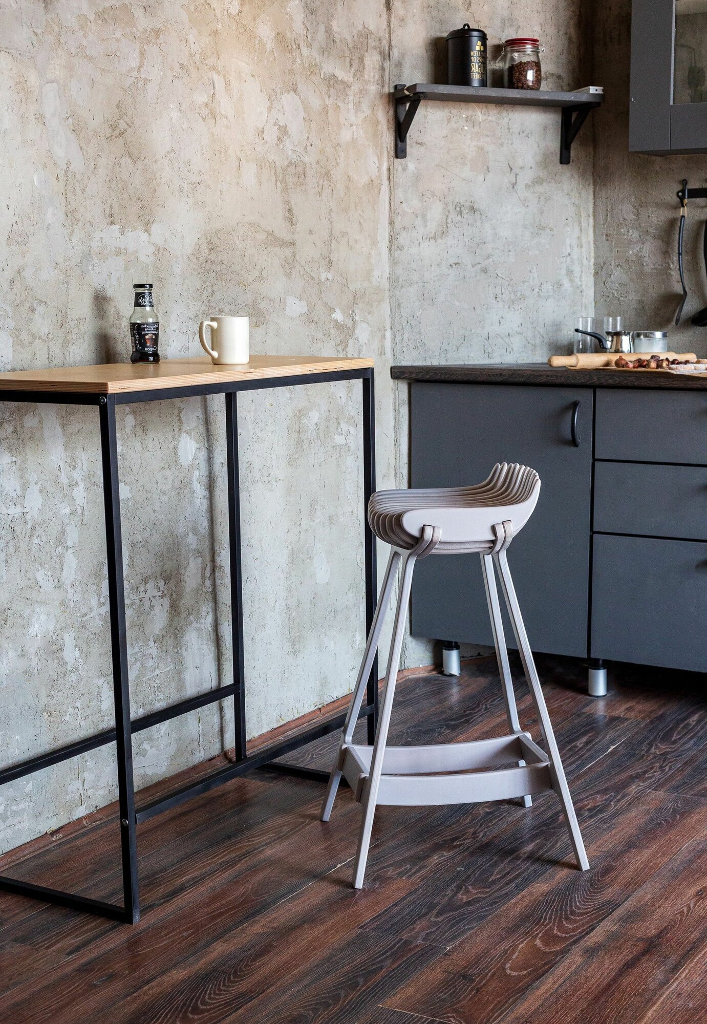 Купить Барный стул PLAYWOODS, из дерева, для кухни, эргономичный, серый