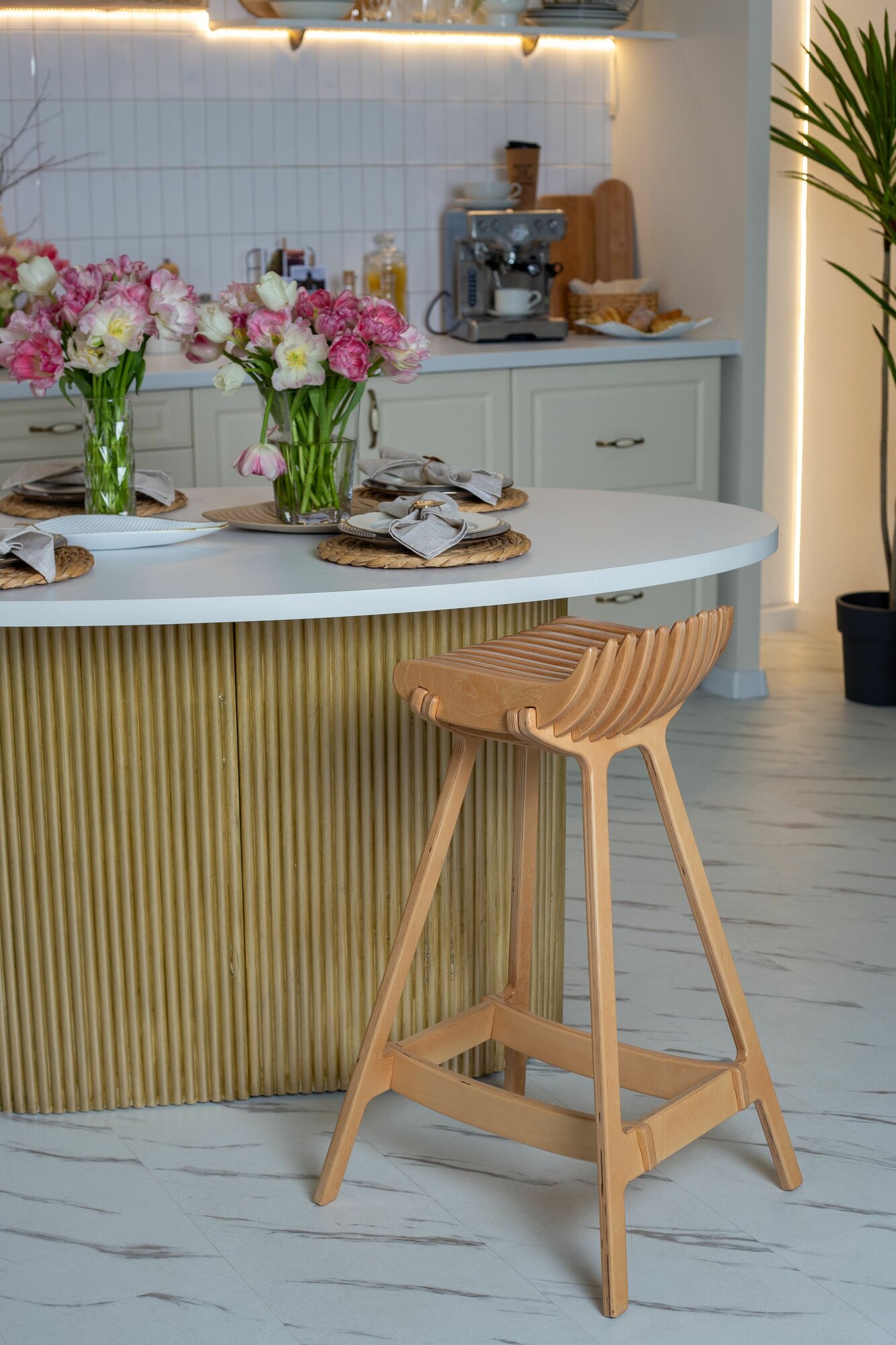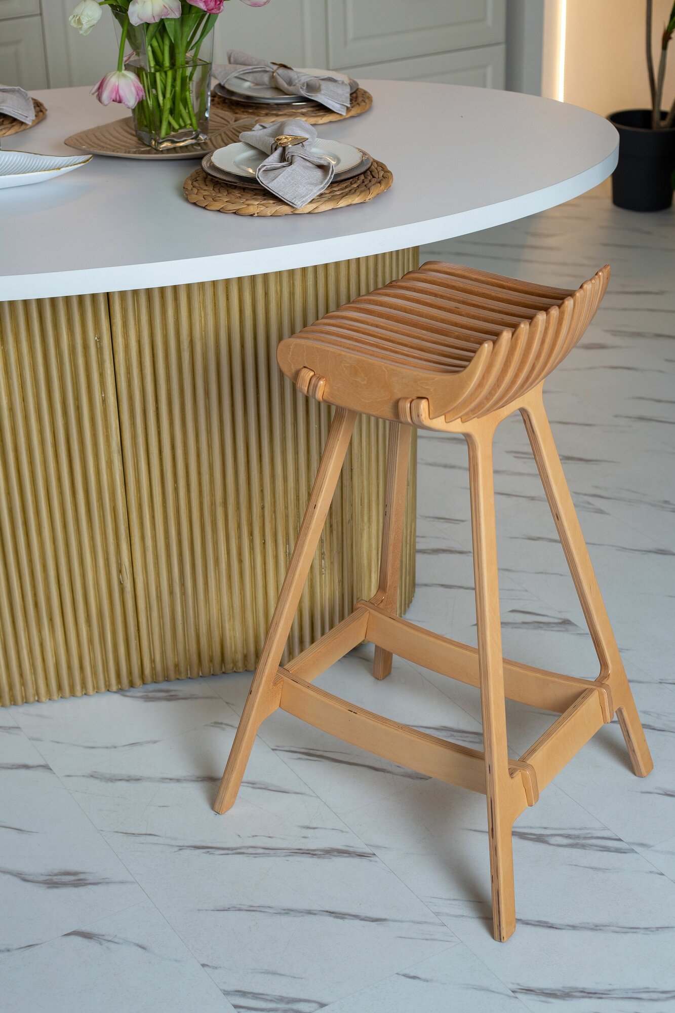 Барный стул PLAYWOODS, фанерный, белый, максимальная нагрузка 100кг