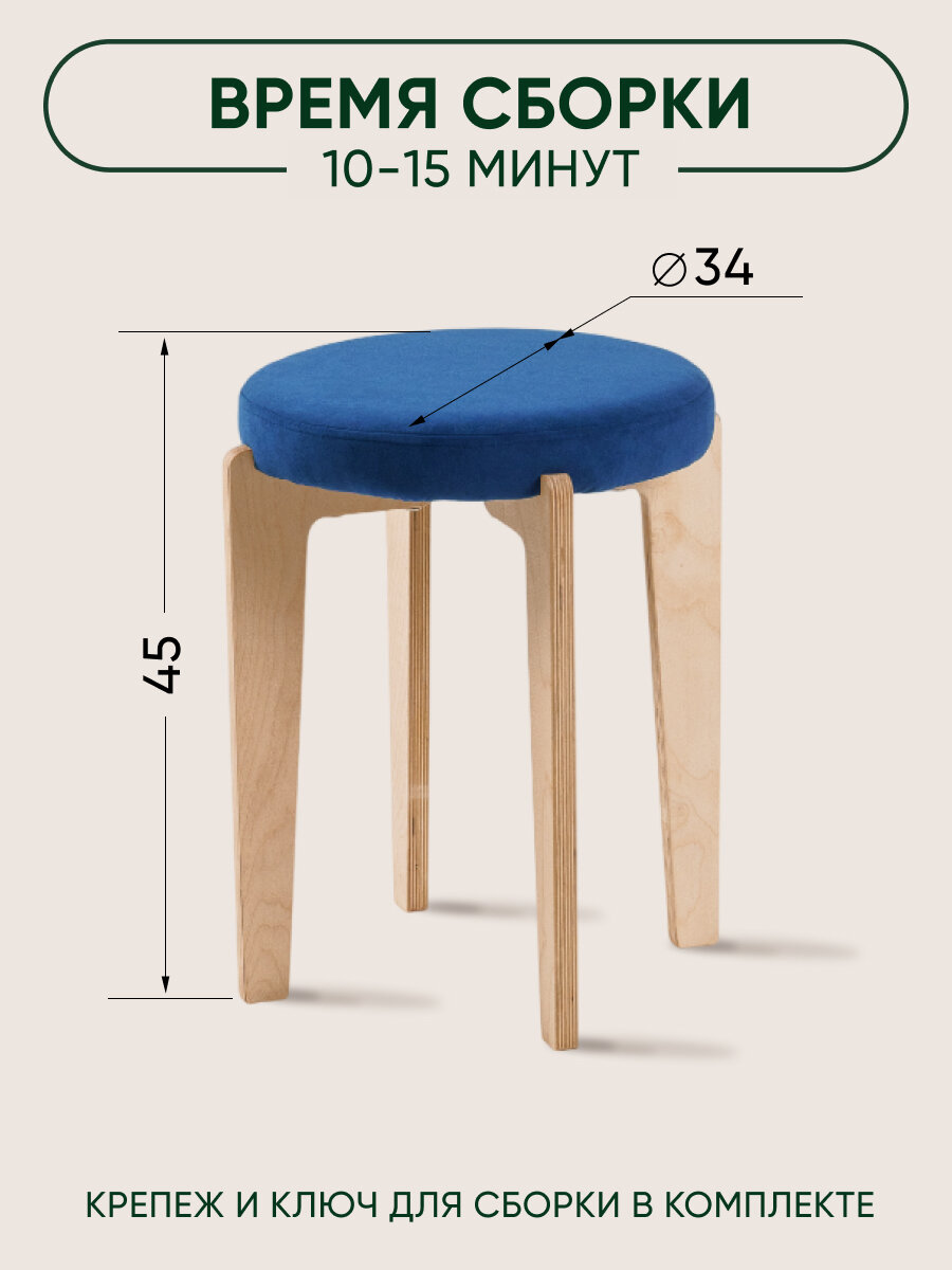 СохранитьТабурет для кухни мягкий, Axiomawood, светлый дуб + синий, нагрузка до 120кг интересное: