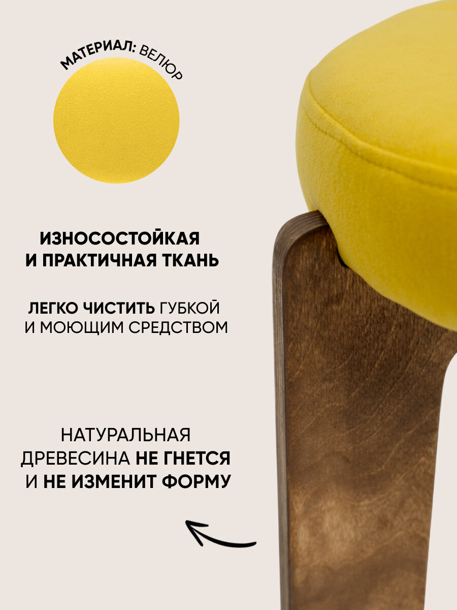 Табурет для кухни мягкий, Axiomawood темный дуб + желтый, нагрузка до 120кг