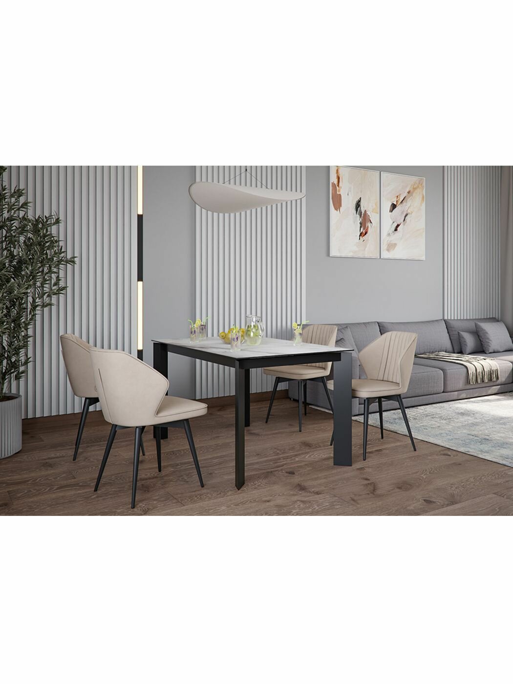 Стул B141-m LATTE VL10 BK (2 шт.) с поворотным механизмом для кухни, велюр бежевый, черные ножки, 49х53х88 см