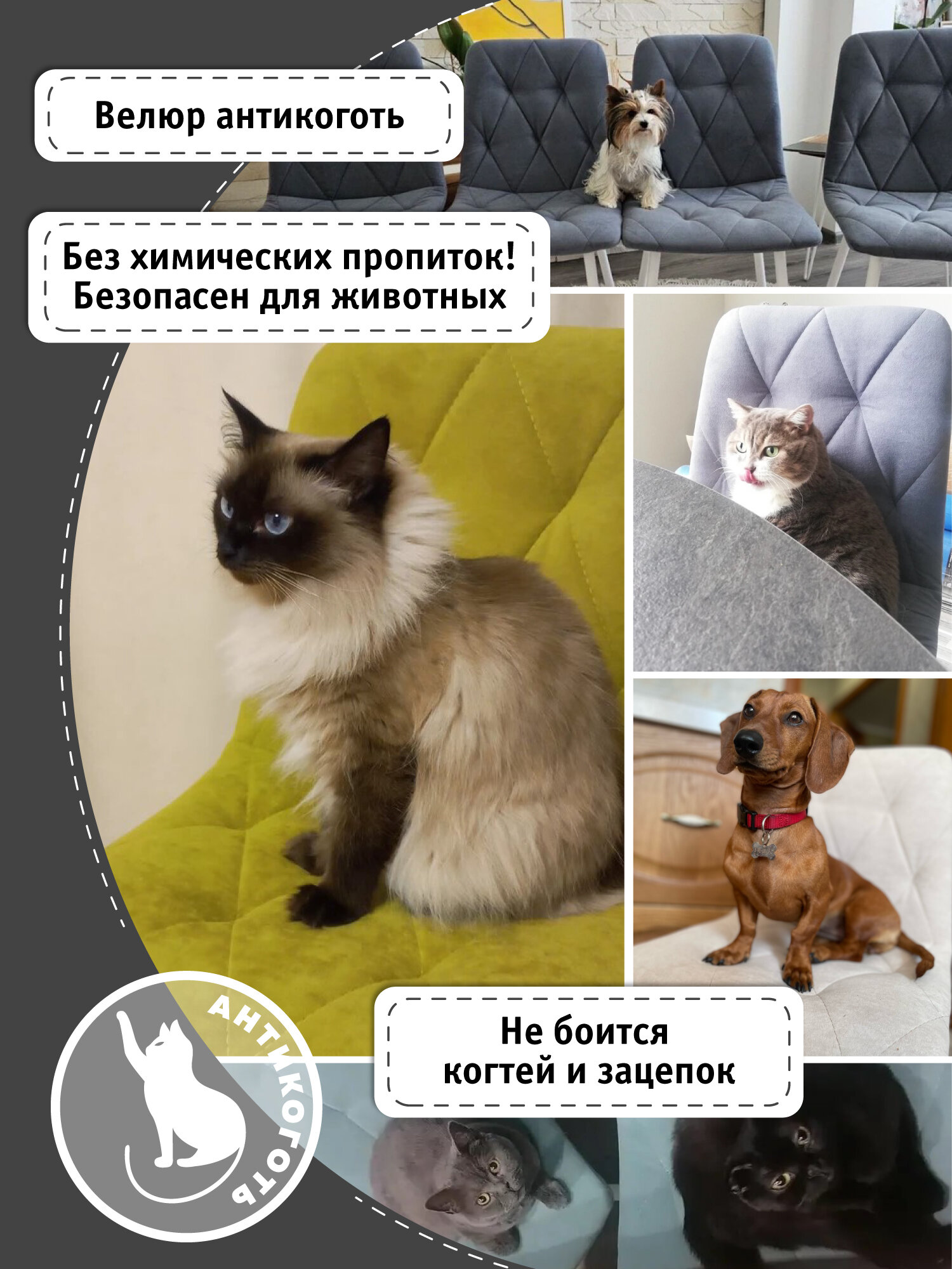Стул кухонный, Дом Столов Ричи, кухонный, велюр, антивандальный, антикоготь, мягкий, комплект 4 шт