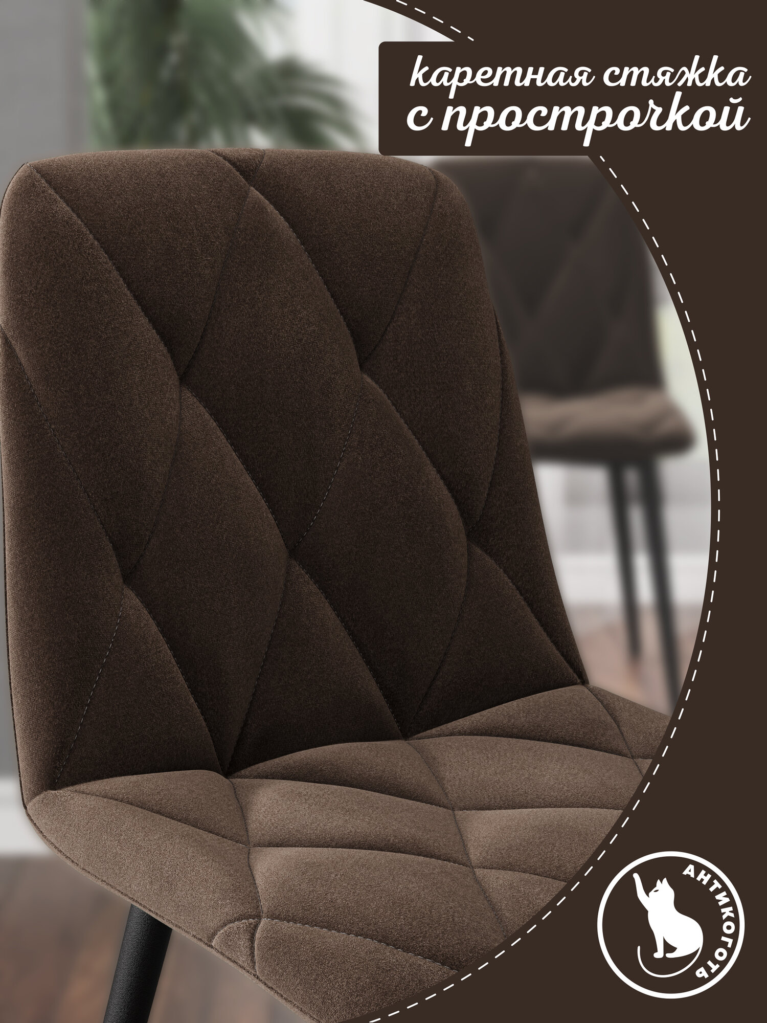 Стул кухонный, Дом Столов Ричи, кухонный, велюр, антивандальный, антикоготь, мягкий, комплект 4 шт