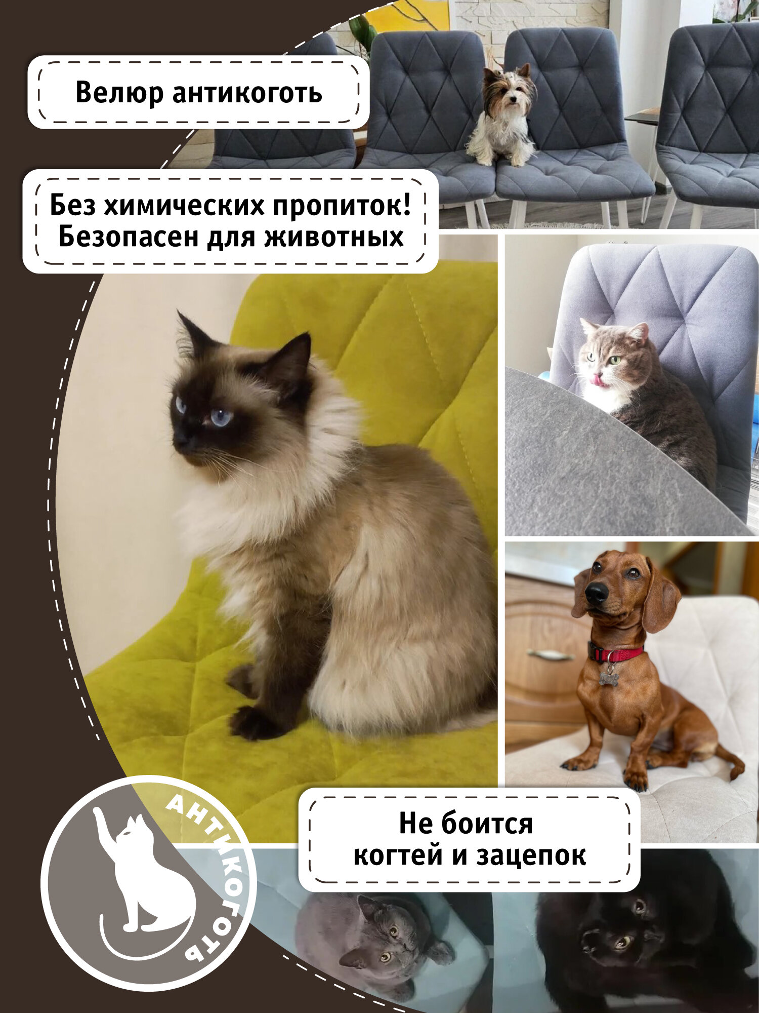 Стул на кухню Ричи, велюр антикоготь