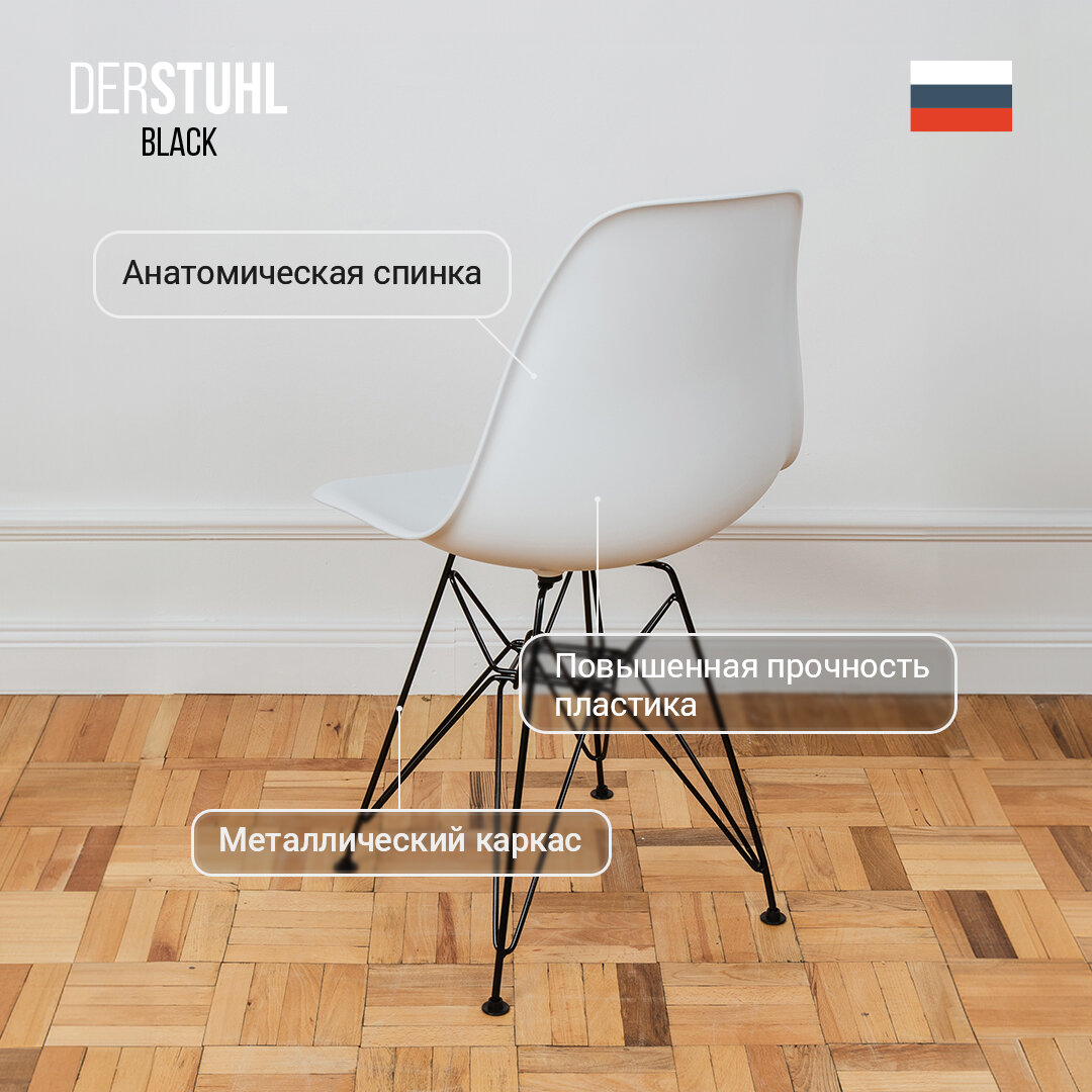 Стул для кухни пластиковый на металлических ножках со спинкой обеденный интерьерный Eames Эймс, 1 шт. черный