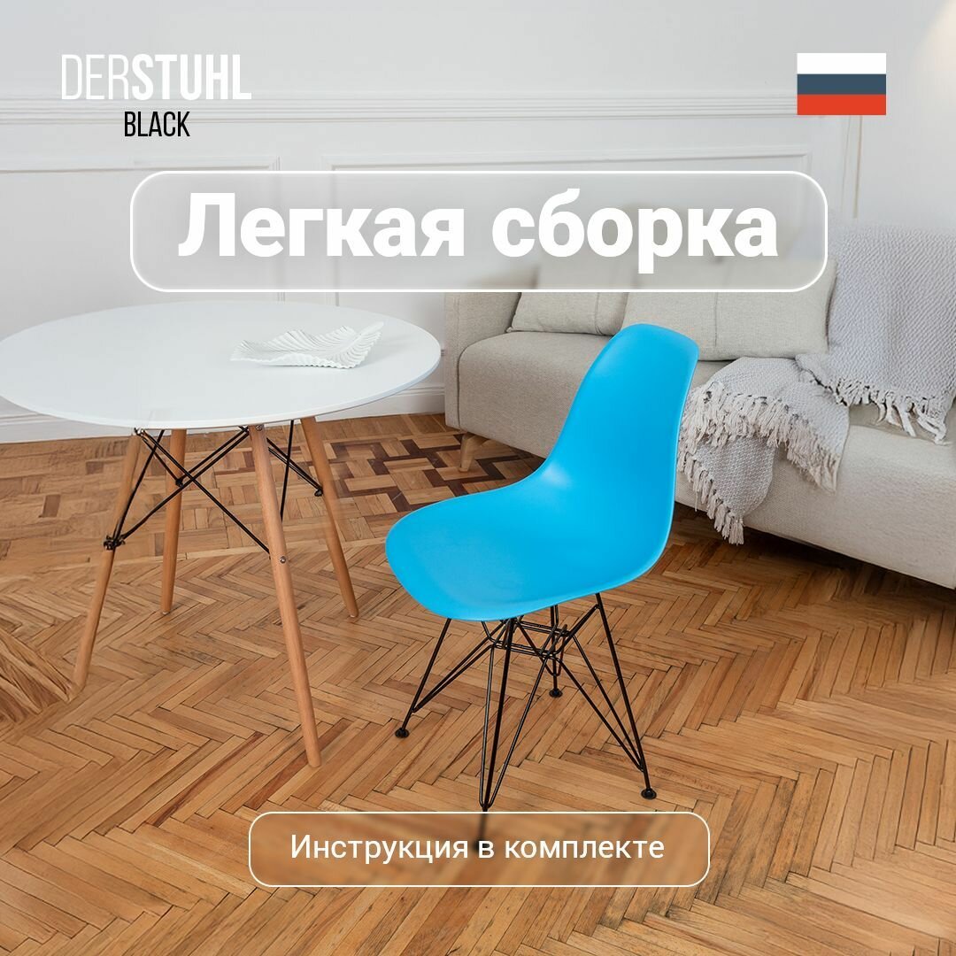 СохранитьСтулья для кухни пластиковые на металлических ножках со спинкой обеденные интерьерные Eames Эймс, 2 шт, голубой интересное: