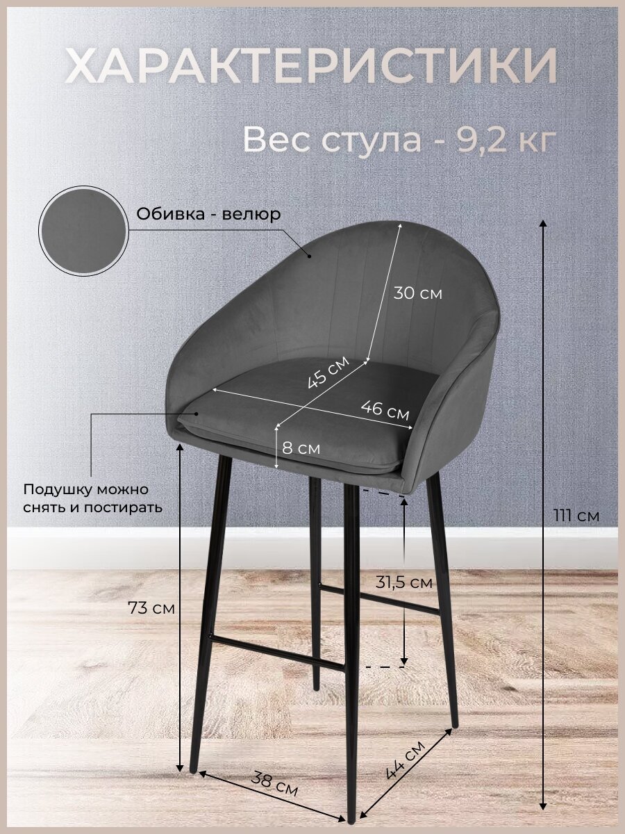 СохранитьБарный стул для кухни, дома Лотос, ноги черный металл, темно-серый интересное: