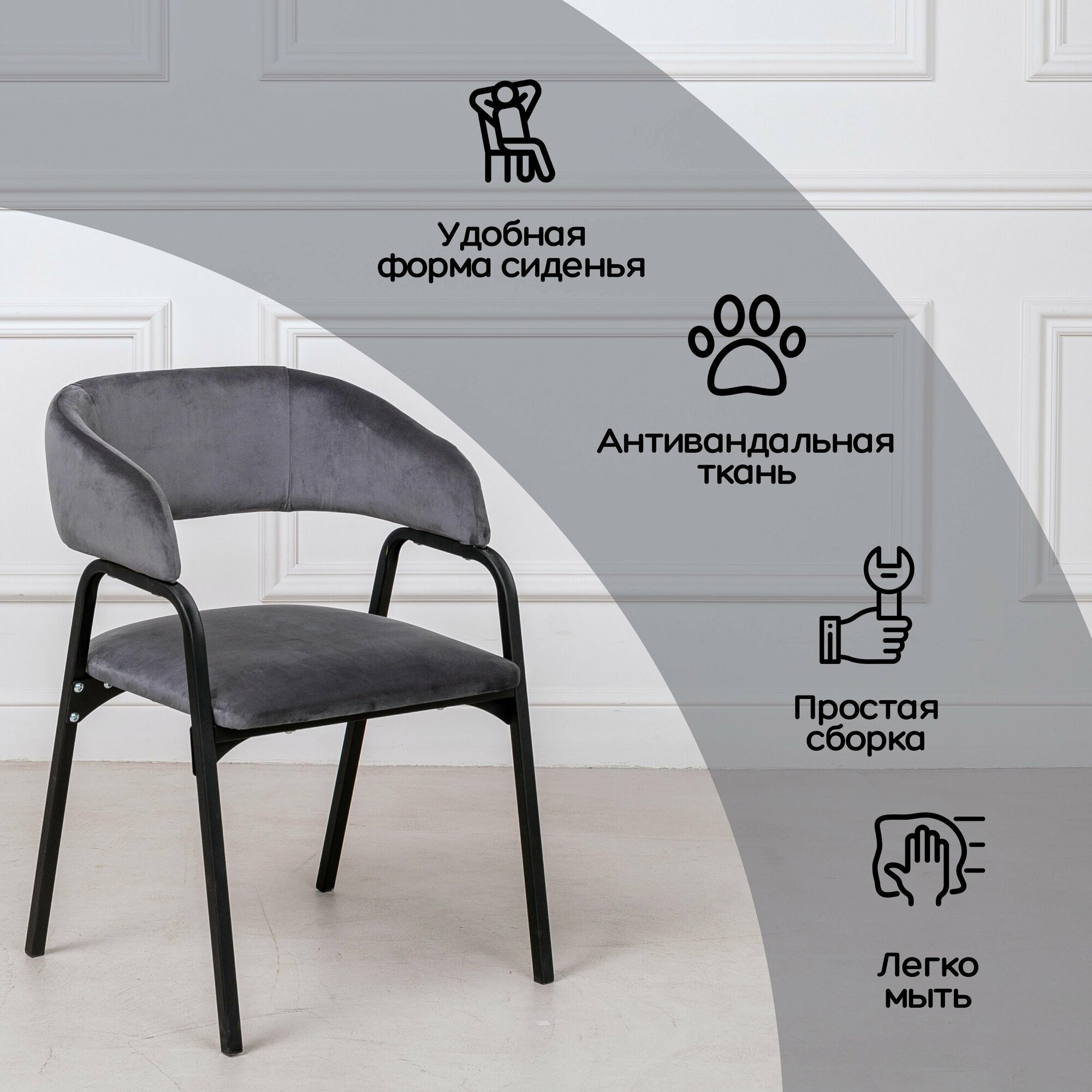 Стулья кухонные STULER Amater, велюр, черные ножки, мягкие подлокотники, 3шт