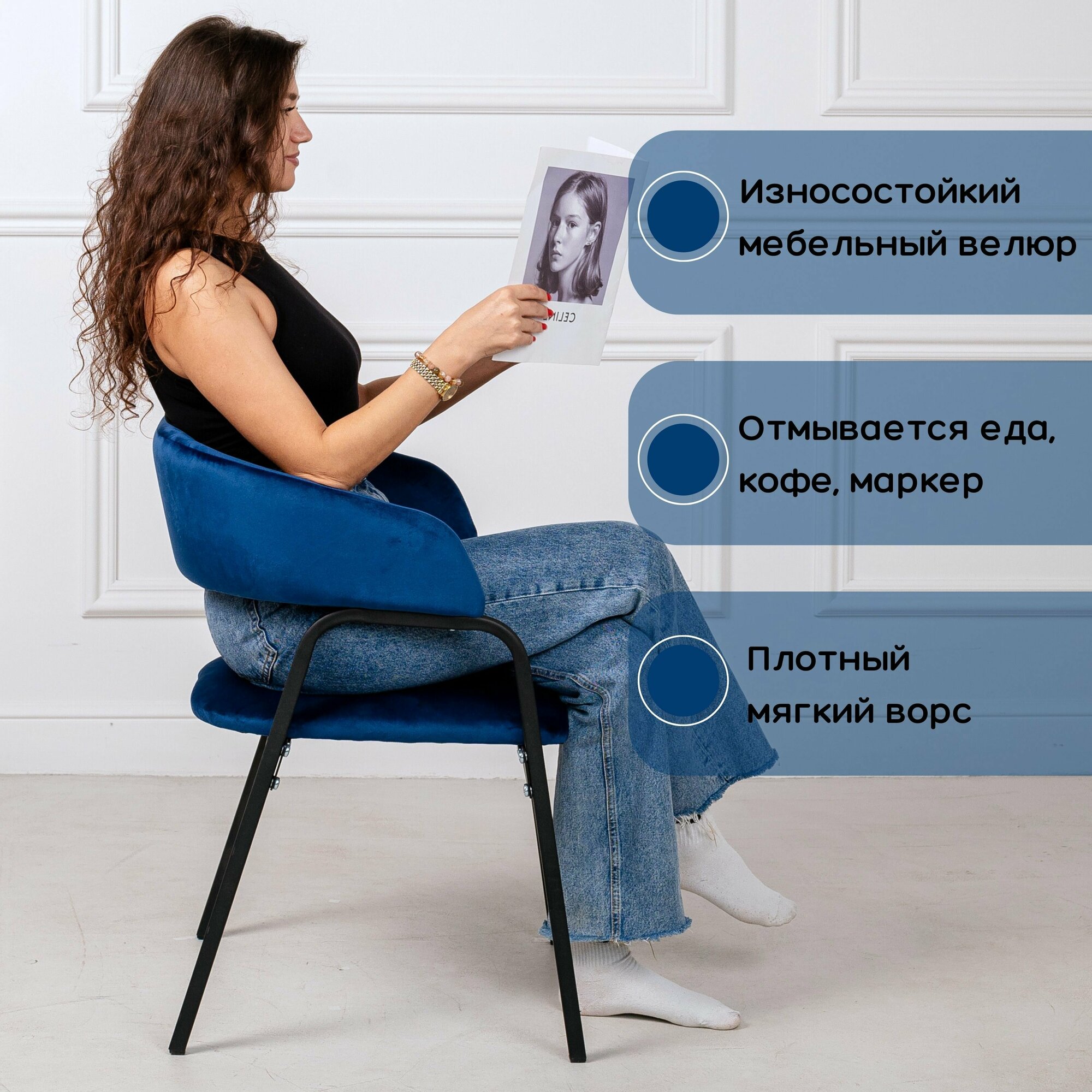 Стул для кухни Amater 1 шт, Синий велюр, черные матовые ножки