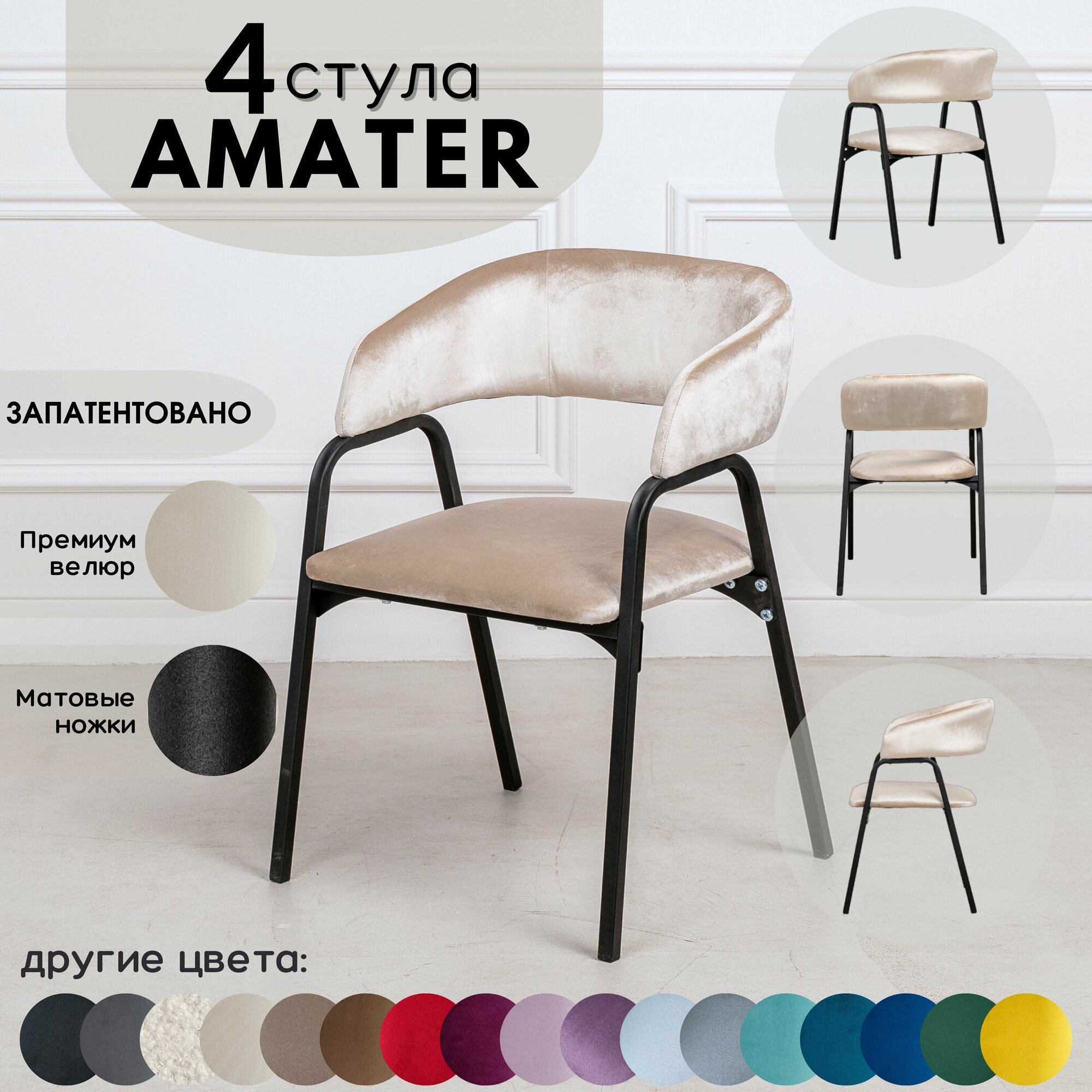 Стулья STULER Chairs Amater, велюр, комплект 4 штуки, ножки, мягкое сиденье
