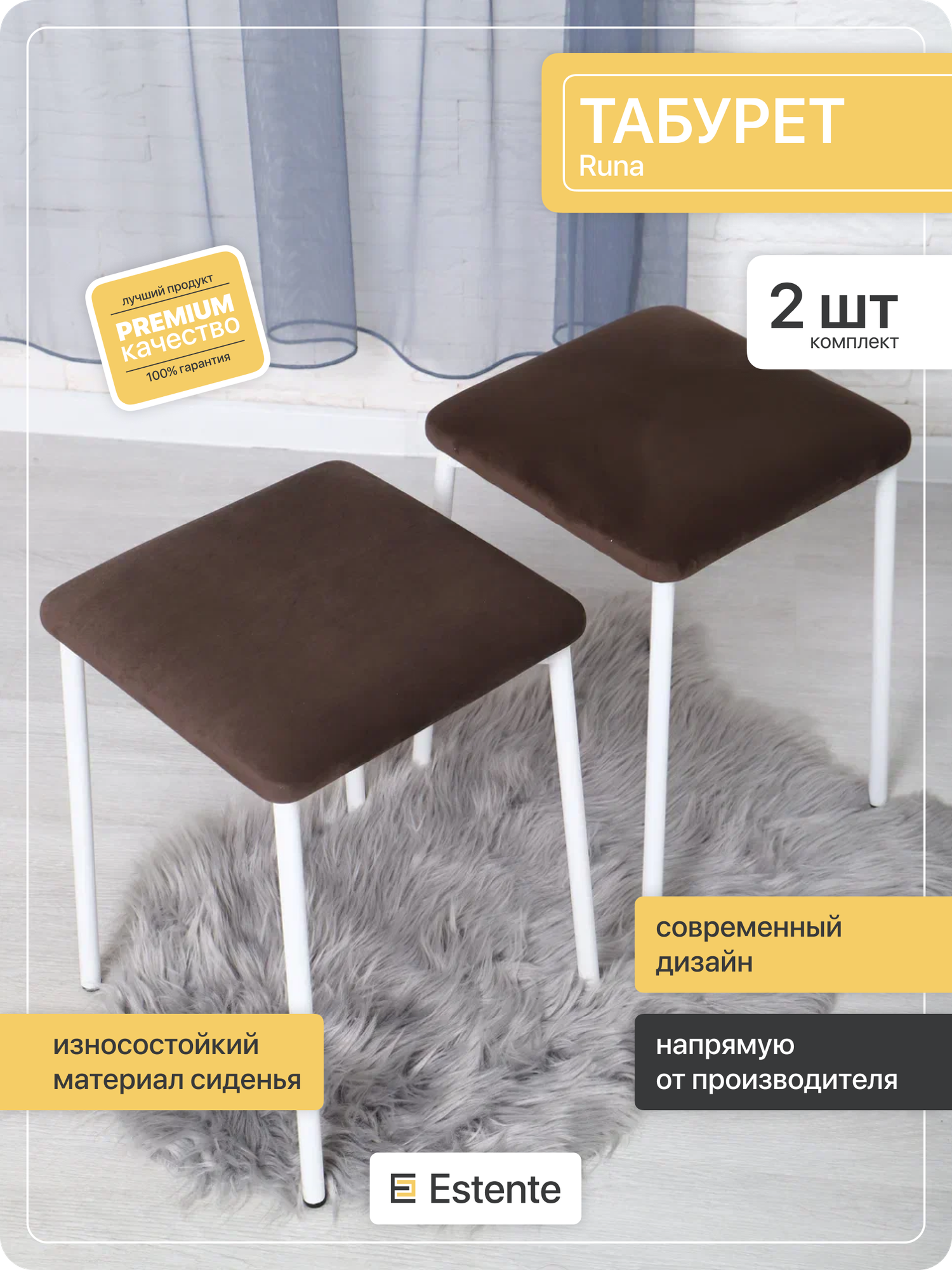 Купить Табурет с мягки сиденьем, ESTEnte, Runa, белый, Кофе, 2 штуки, 35х35х45