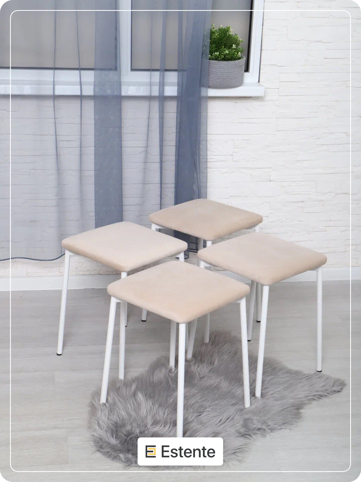 Табурет с мягки сиденьем, ESTEnte, Runa, белый, Крем, 4 штуки, 35х35х45