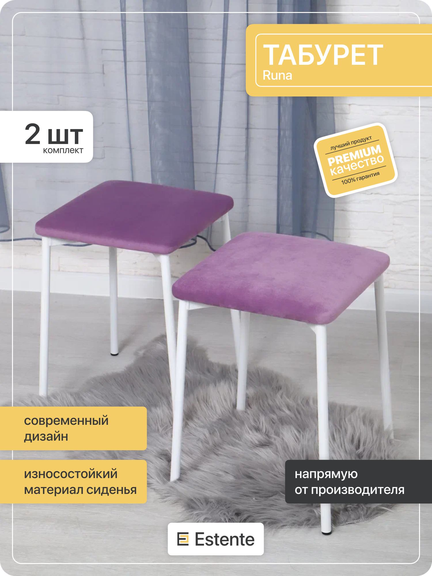 СохранитьТабурет с мягки сиденьем, ESTEnte, Runa, белый, Сирень, 2 штуки, 35х35х45 интересное: