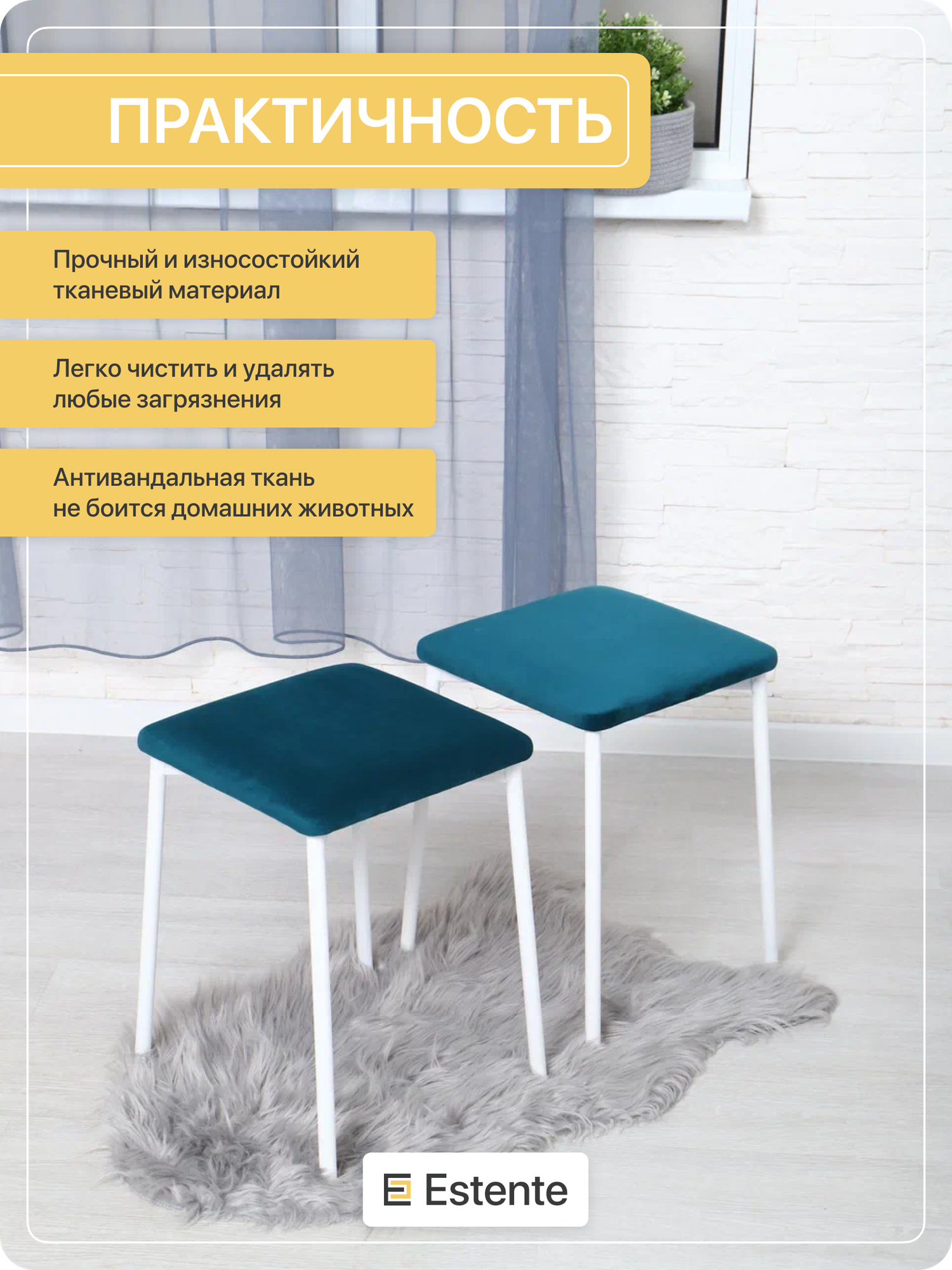 Табурет с мягки сиденьем, ESTEnte, Runa, белый, Изумруд, 2 штуки, 35х35х45