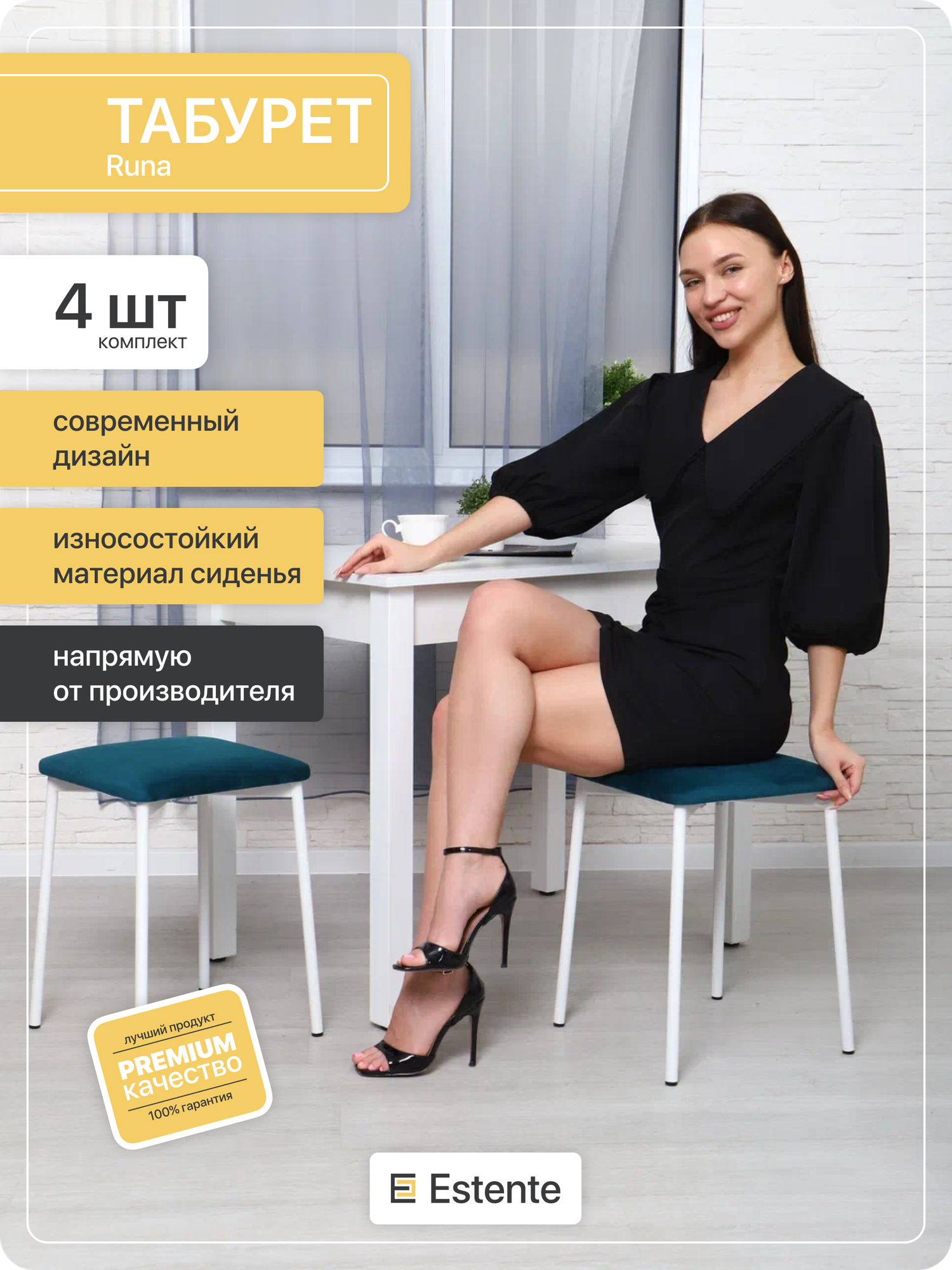 СохранитьТабурет с мягки сиденьем, ESTEnte, Runa, белый, Изумруд, 4 штуки, 35х35х45 интересное: