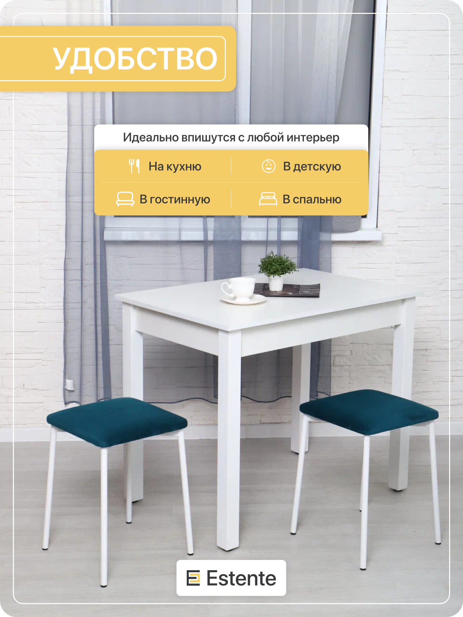 Купить Табурет с мягки сиденьем, ESTEnte, Runa, белый, Изумруд, 4 штуки, 35х35х45
