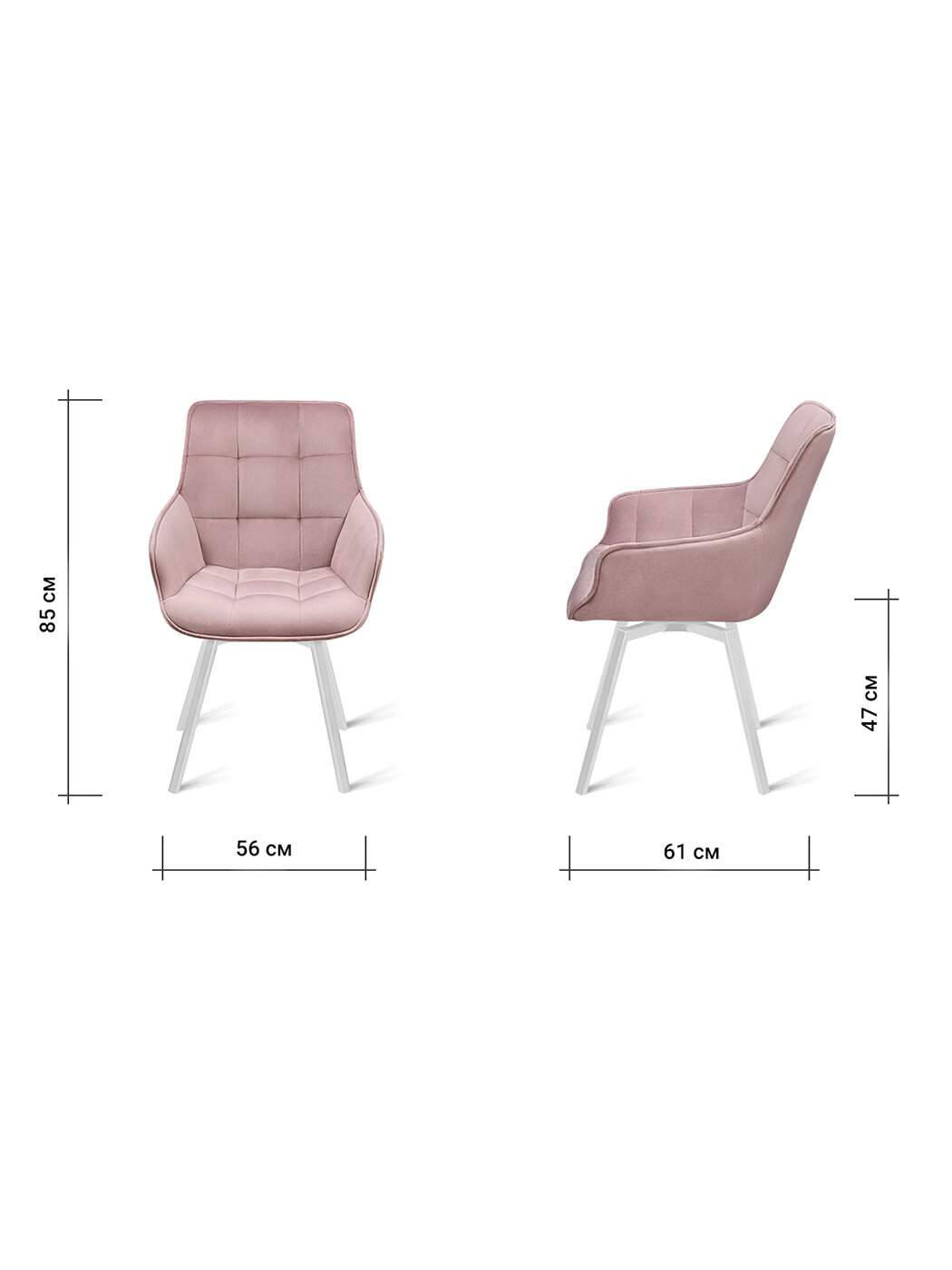 Купить Стул B315-m (B815-m) POWDER VL28 W (2 шт.) с поворотным механизмом для кухни белые ножки, велюр пудровый, 56х61х85 см