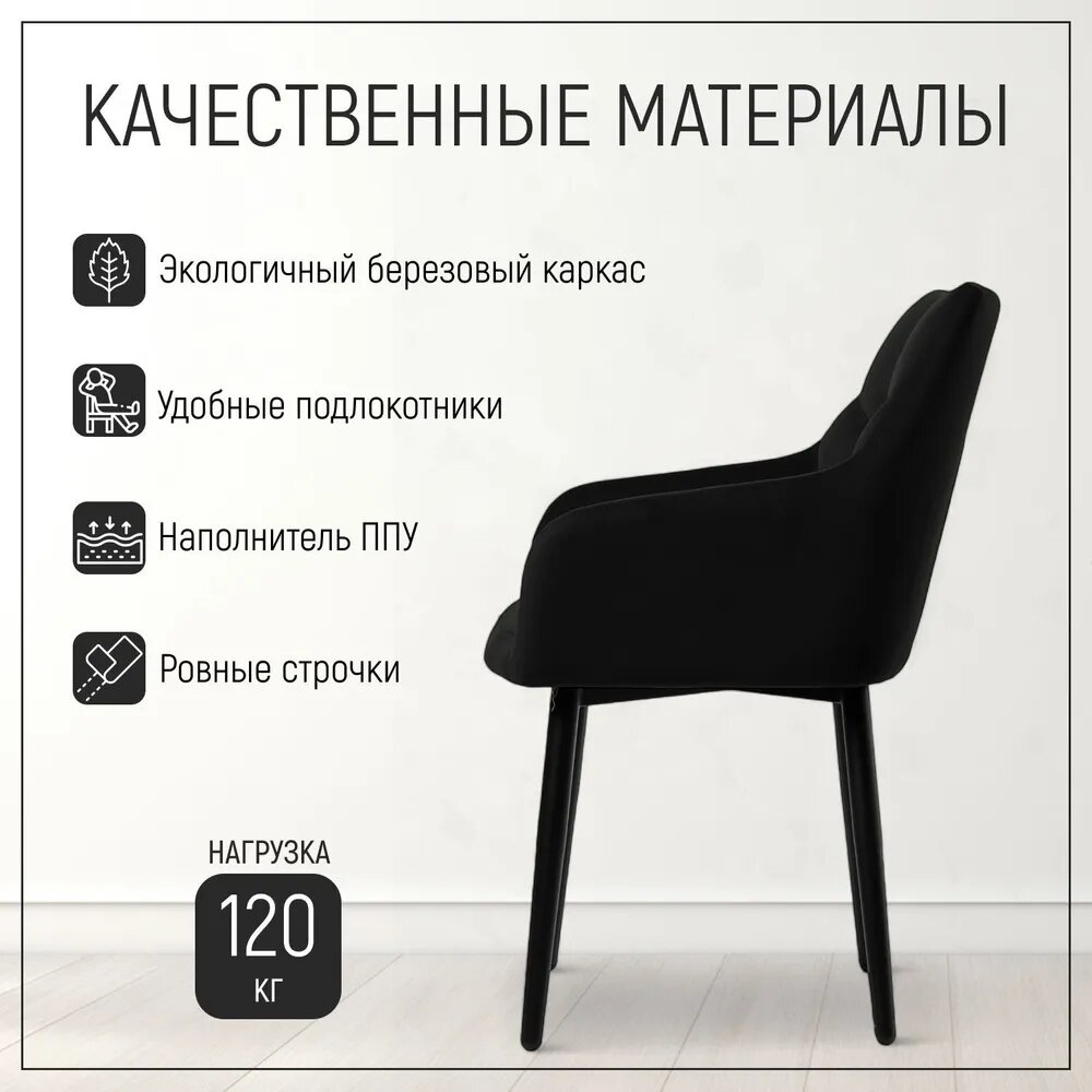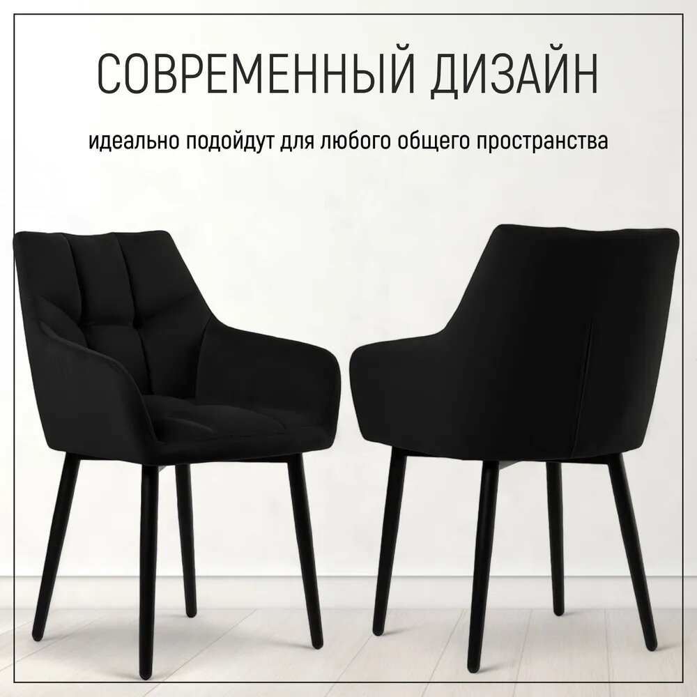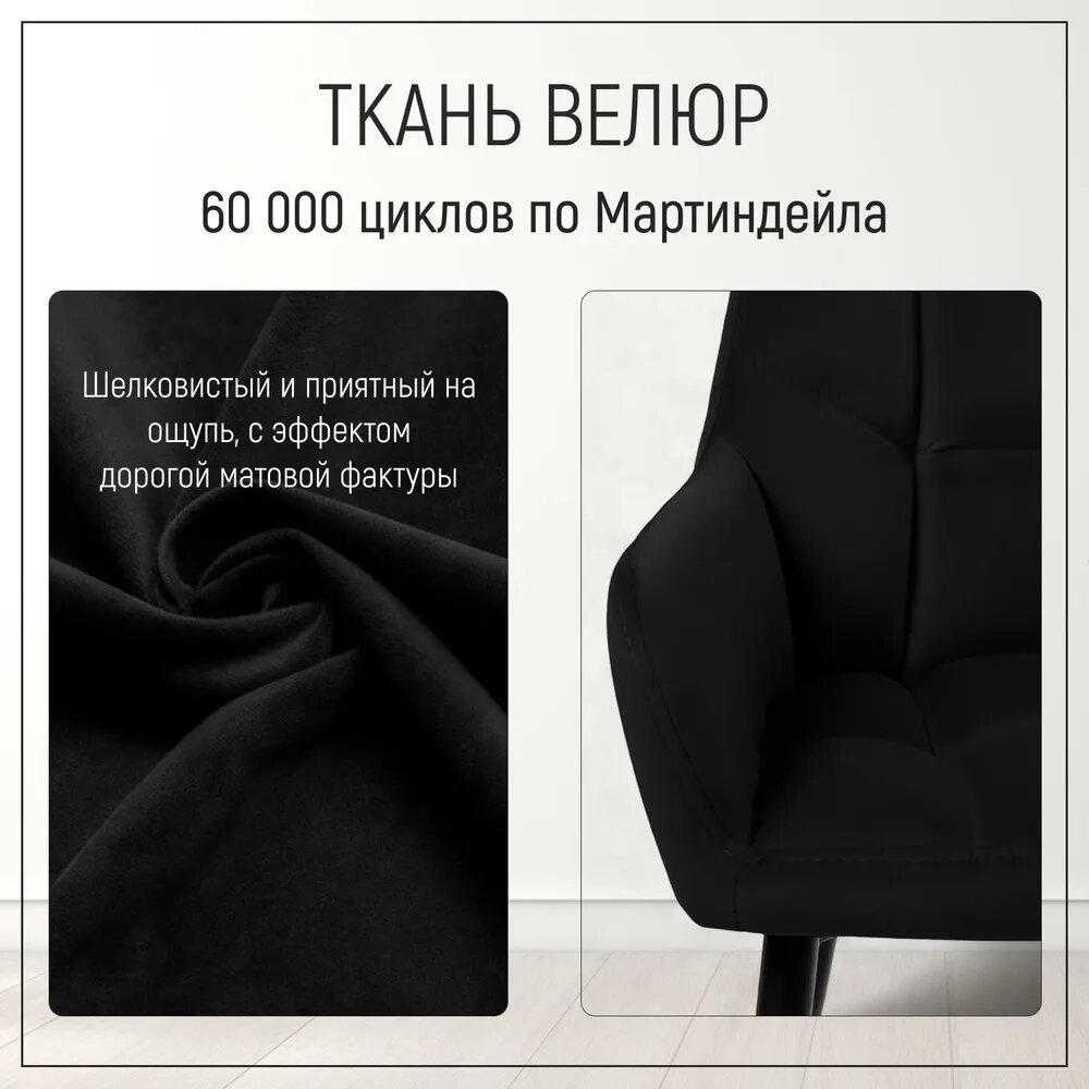 Комплект стульев Милан Люкс, 2шт, черный, велюр, с подлокотниками, мягкие, кухонные, обеденные, Divan24 интересное: