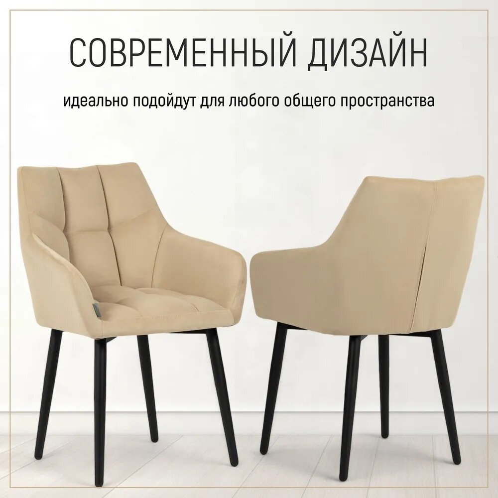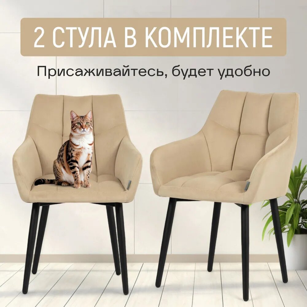 Комплект стульев Милан Люкс, 2шт, бежевый, велюр, с подлокотниками, мягкие, кухонные, обеденные, Divan24 интересное: