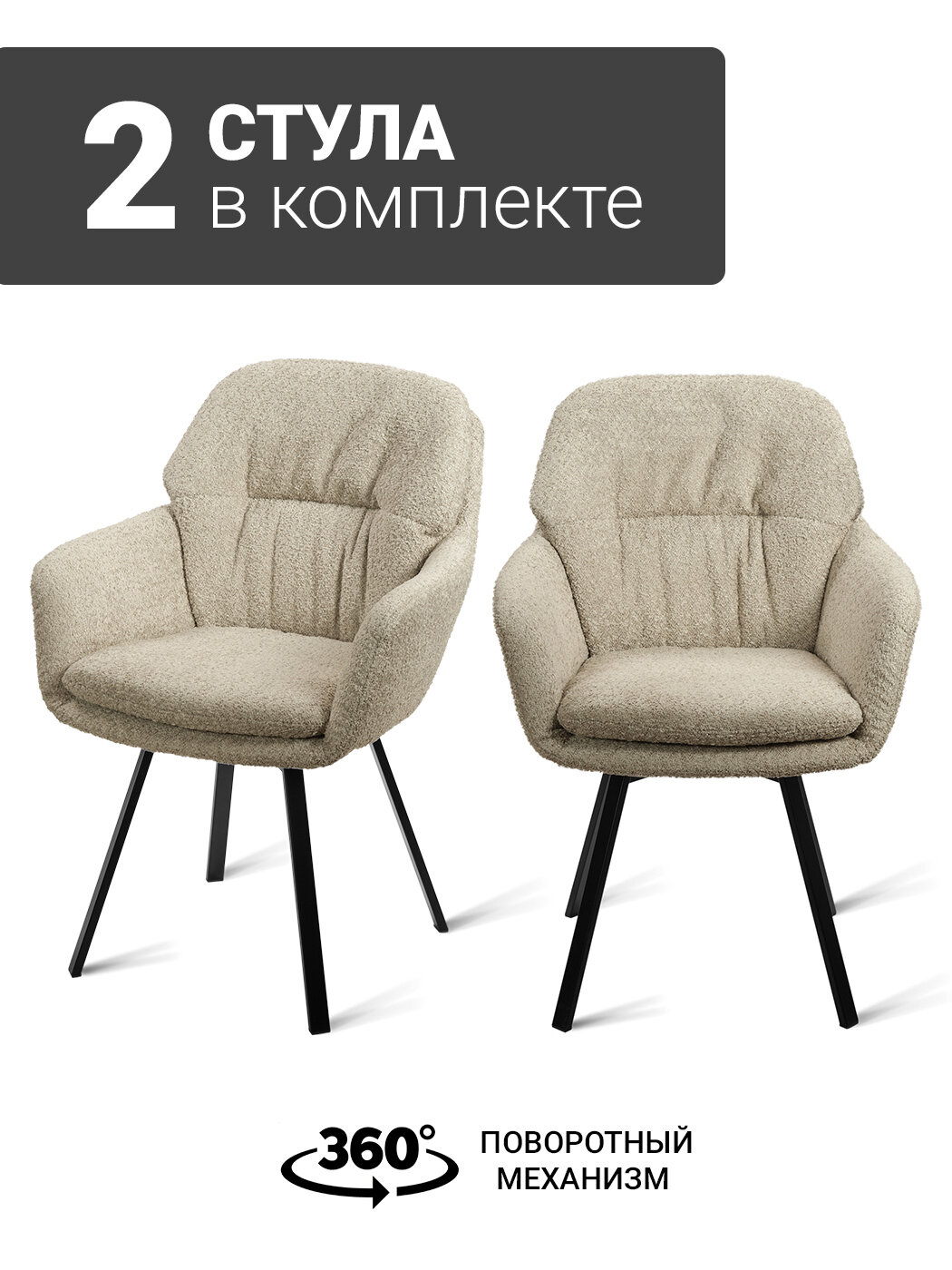 Стул-кресло B818-M RAM CAP BK (2 шт.) с поворотным механизмом, букле светло-бежевый, черные ножки