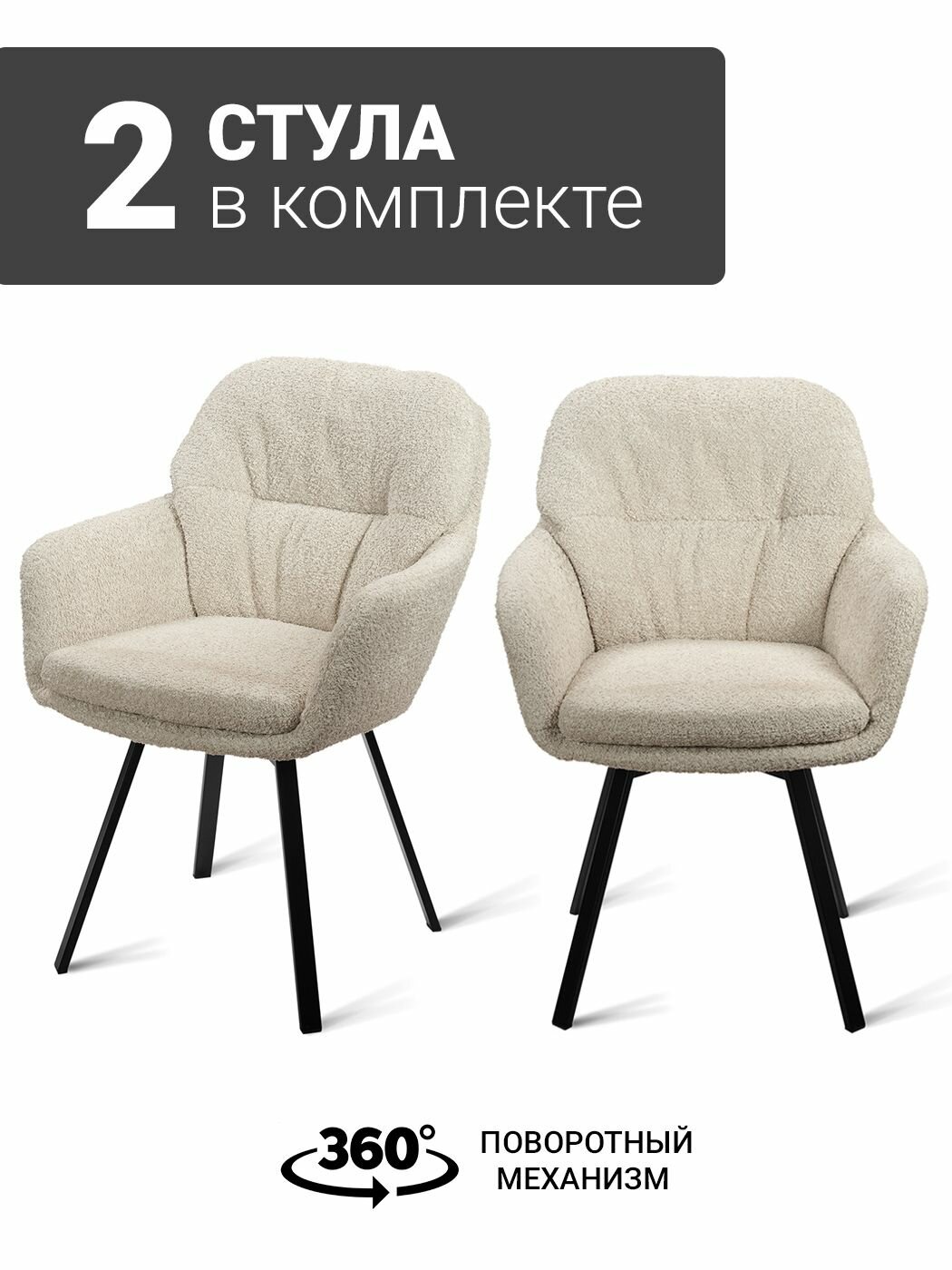 Купить Стул-кресло B818-M RAM CAP BK (2 шт.) с поворотным механизмом, букле светло-бежевый, черные ножки