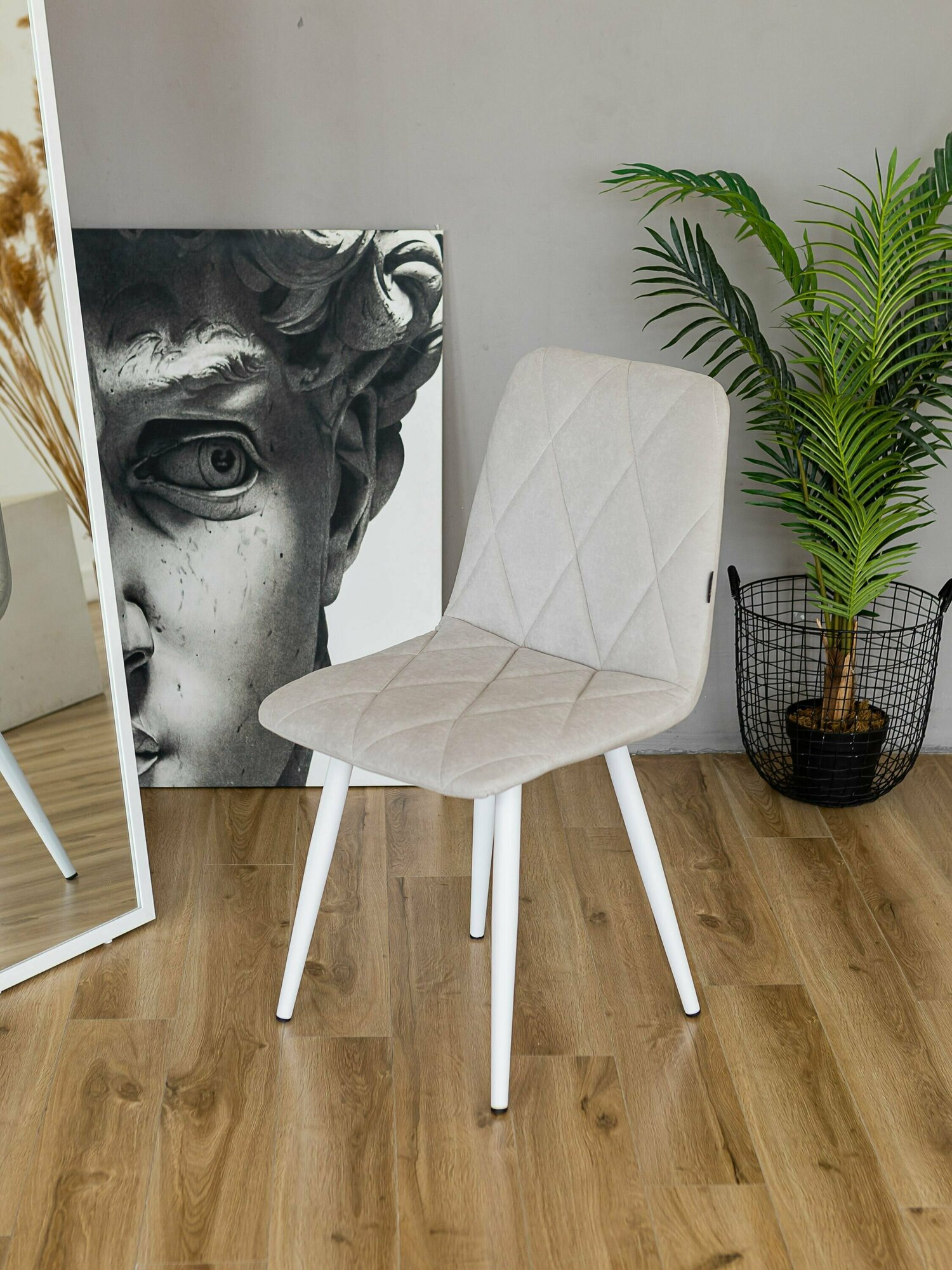 Милана Набор мягких стульев для кухни /кухонные стулья/ цвет бежевый с белыми ножками/4шт