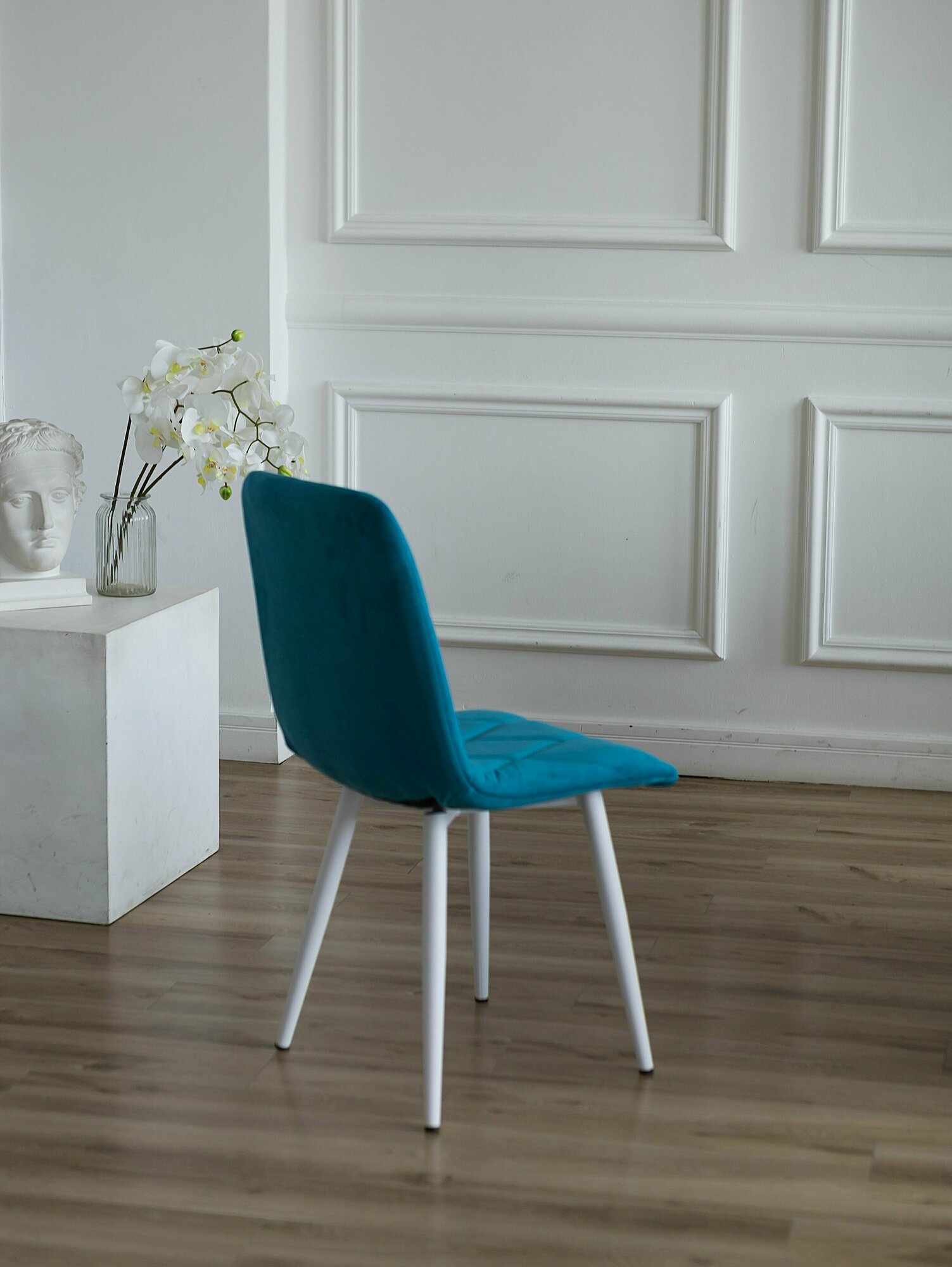 Милана Мягкий стул/Набор стульев /кухонные стулья/цвет синий с белыми ножками/2шт