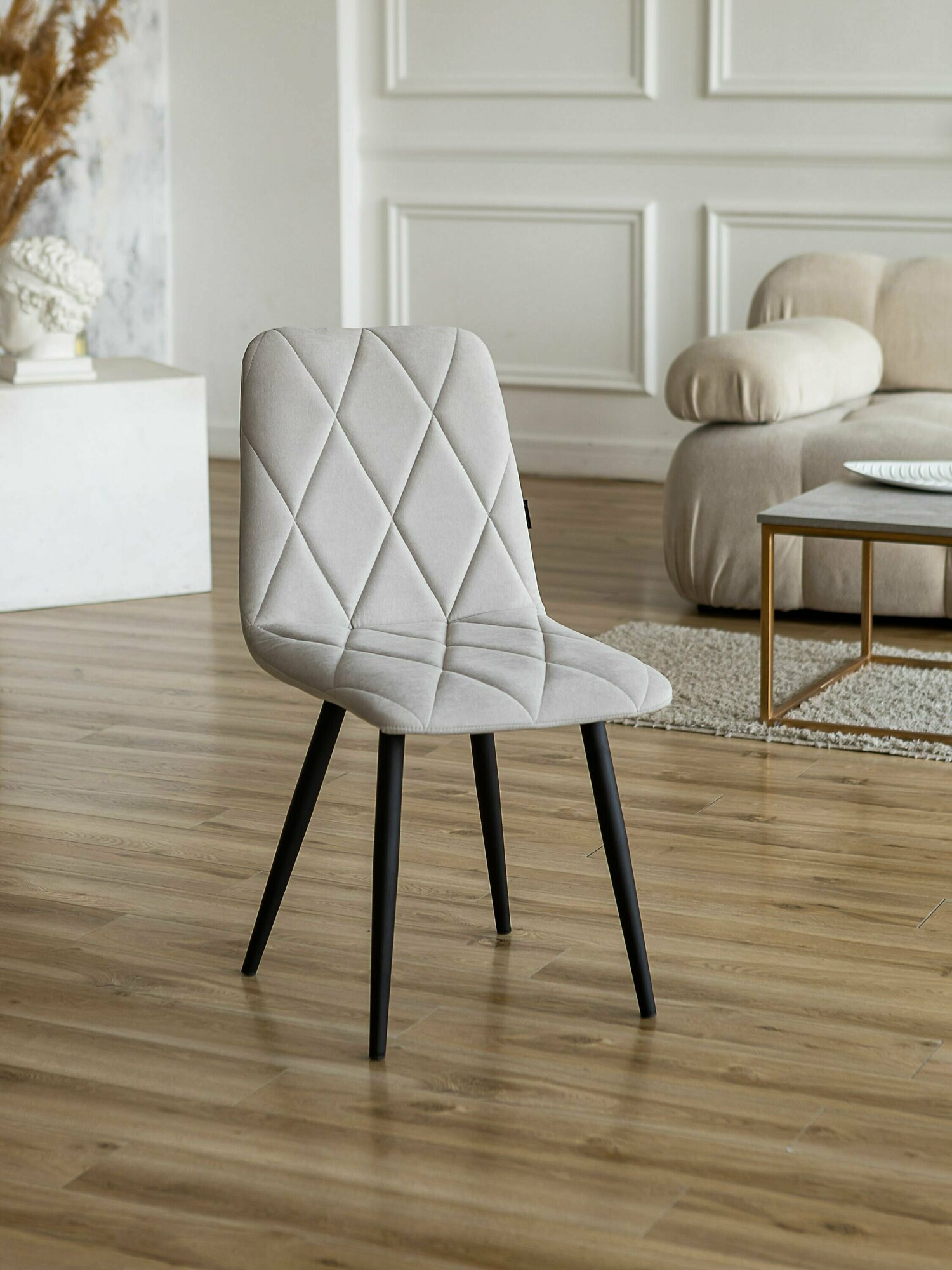 Милана Мягкие стулья для кухни, гостиной/Набор стульев /кухонные стулья/цвет светло-серый с черными ножками/4шт