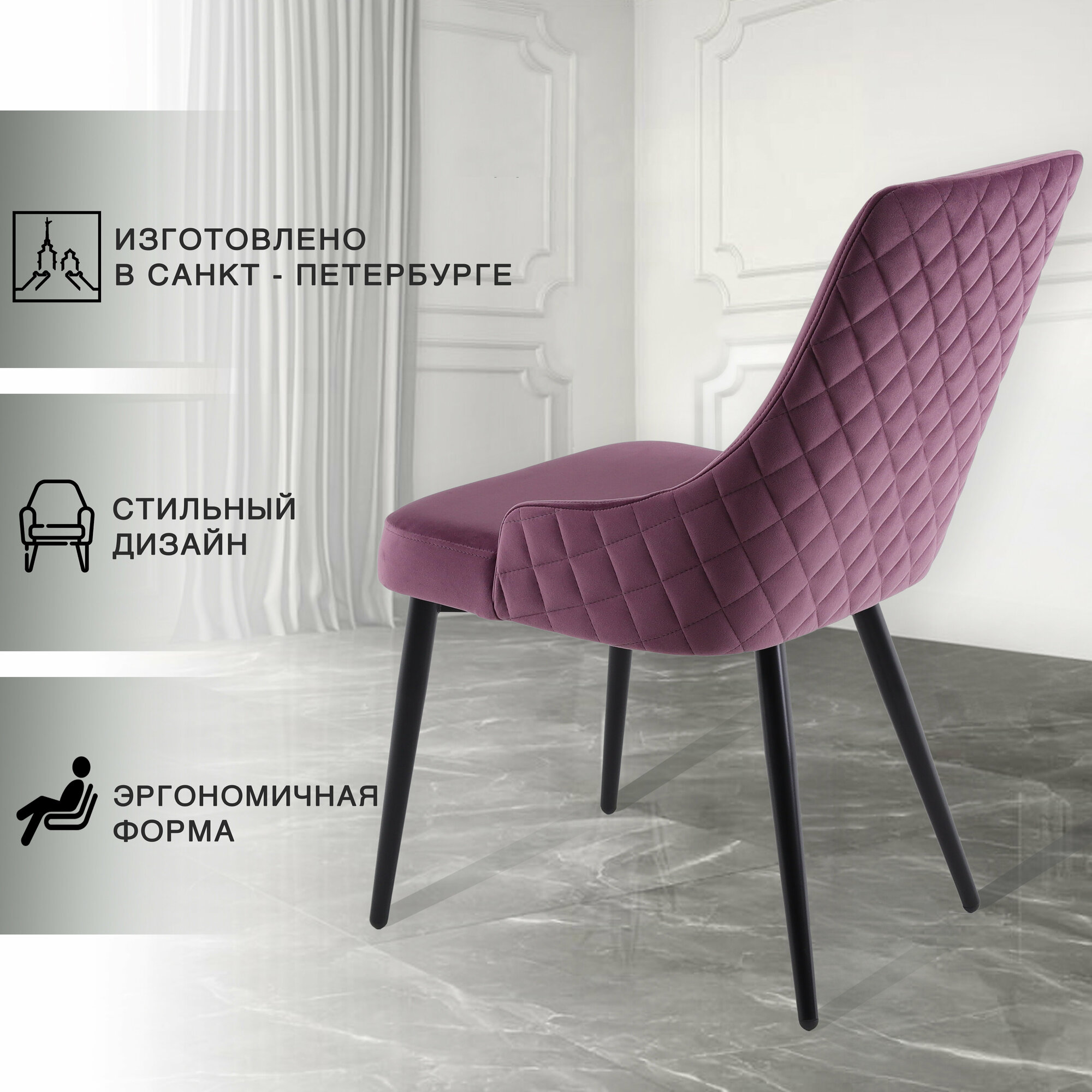 СохранитьКухонный стул ROOMBELL "Luxury" со спинкой, велюровой обивкой и ножками, сиреневого цвета интересное: