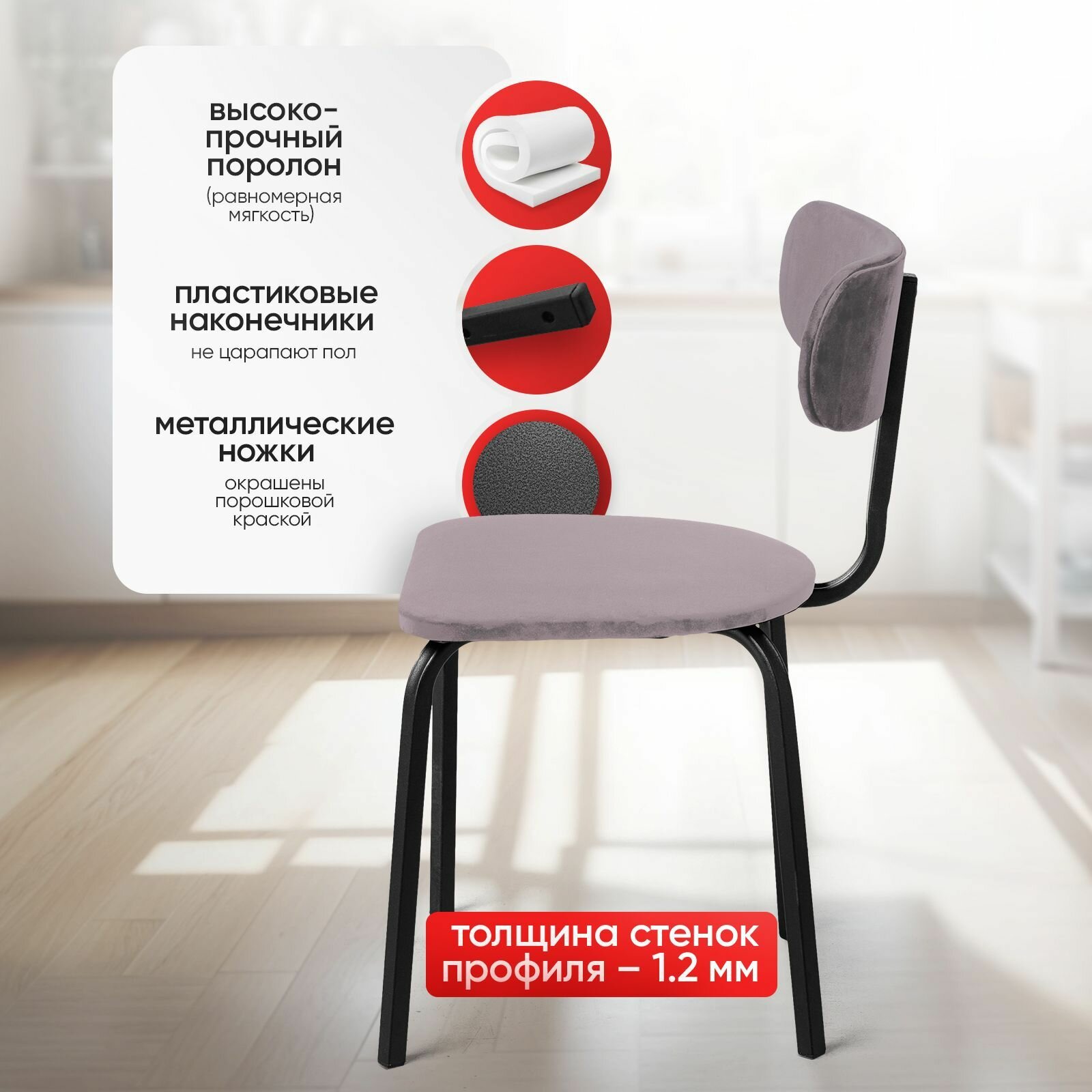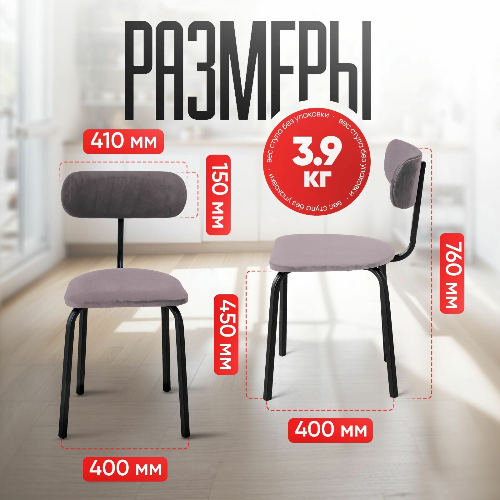 СохранитьСтулья для кухни STULER chairs Комплект мягких стульев Nova 1 шт, велюр Светло-серый, черные матовые ножки интересное: