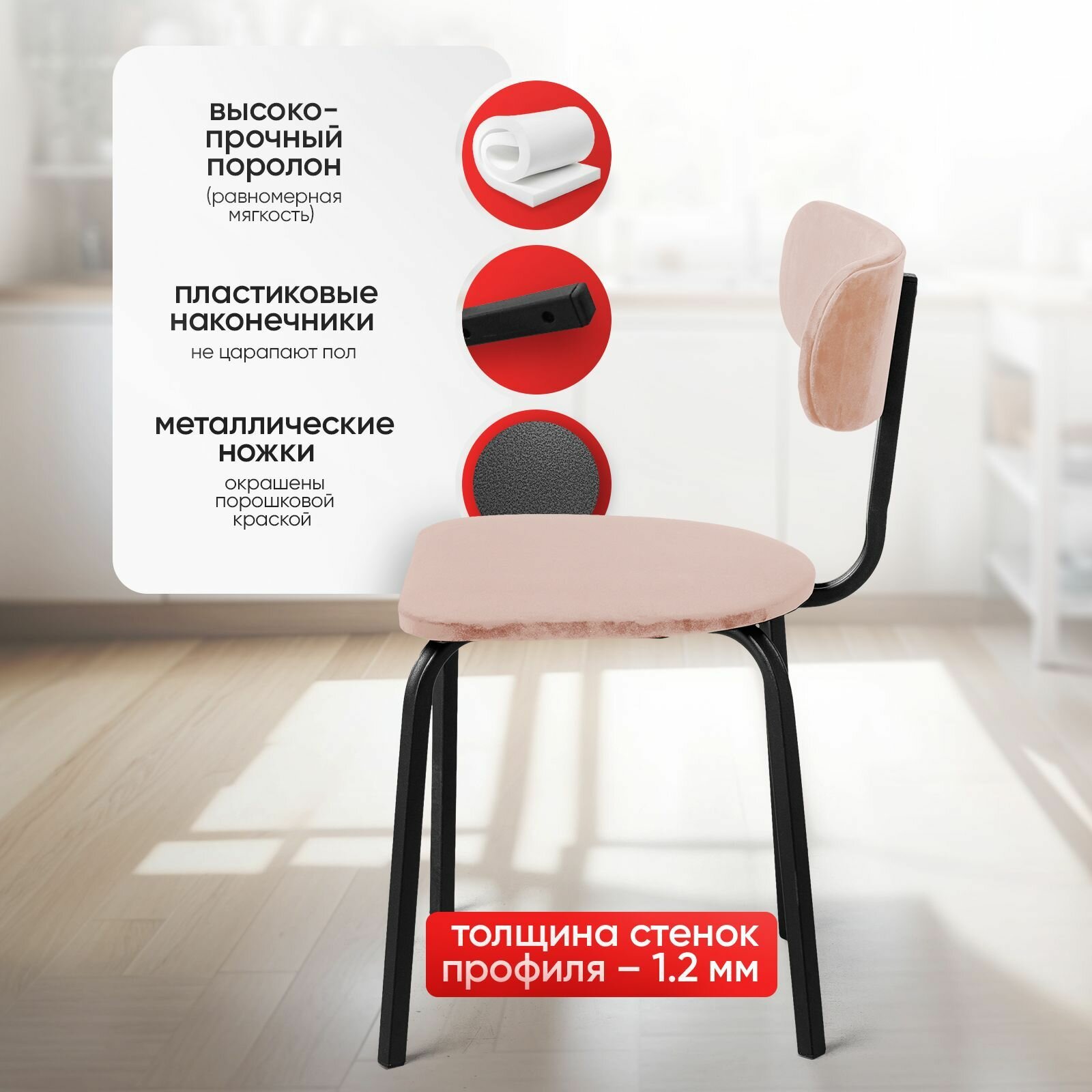 СохранитьСтулья для кухни STULER chairs Комплект мягких стульев Nova 1 шт, велюр Персиковый, черные матовые ножки интересное: