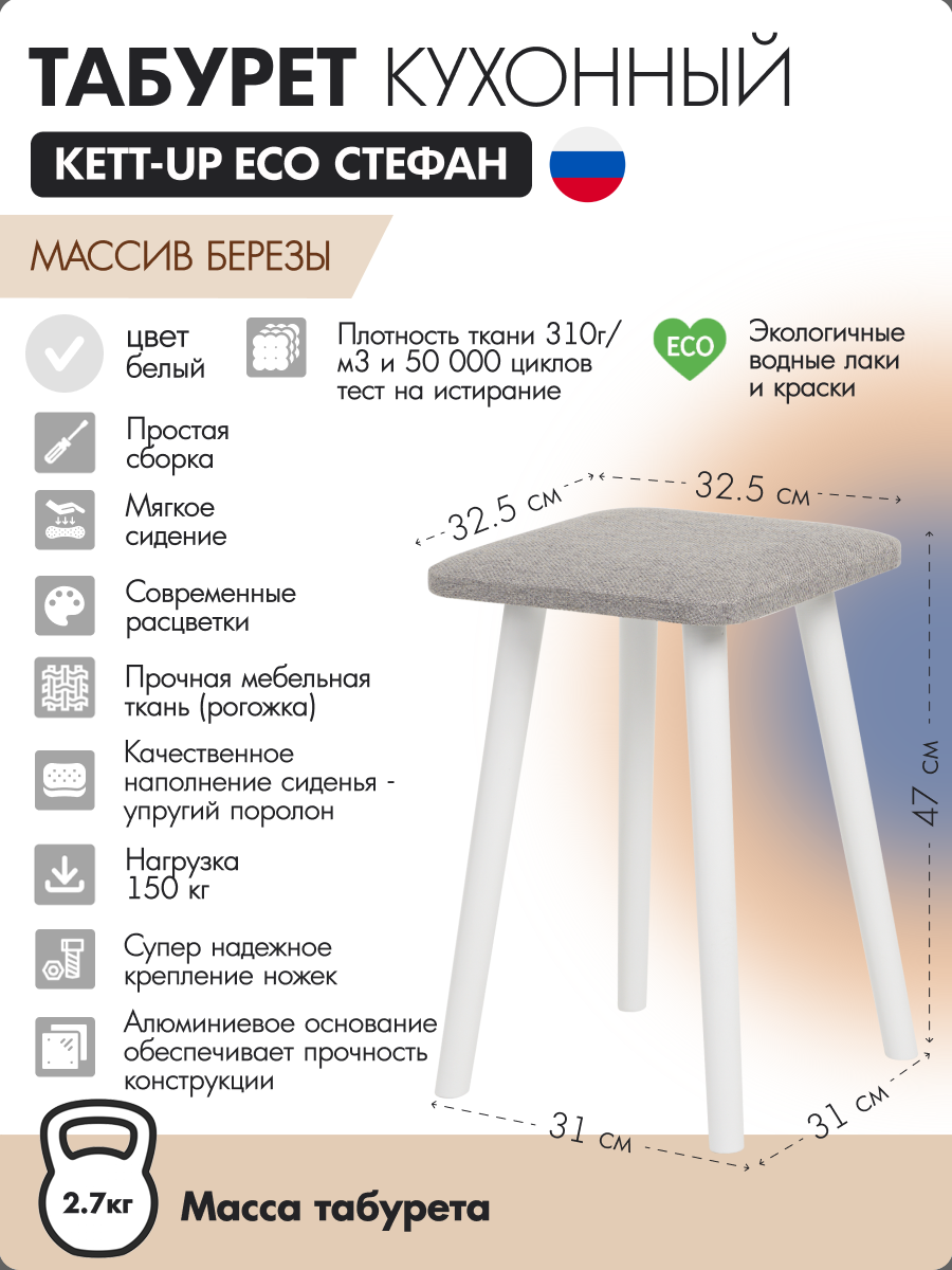 Купить Табурет кухонный KETT-UP ECO СТЕФАН с мягким сиденьем, квадрат, белый