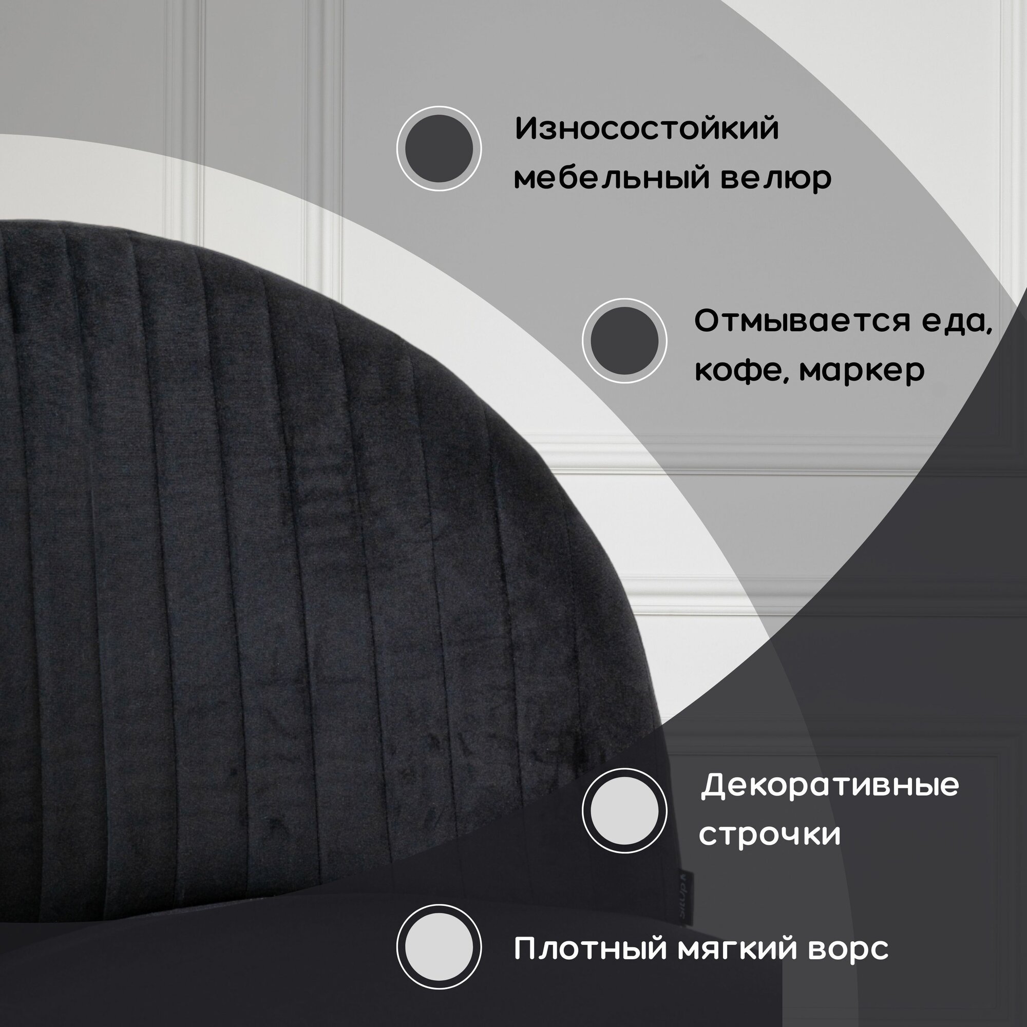 Мягкое кресло Сван Grafit велюр, современный стиль скандинавский лофт, для дома, в гостиную, офисное, для салона красоты, для кафе и ресторанов