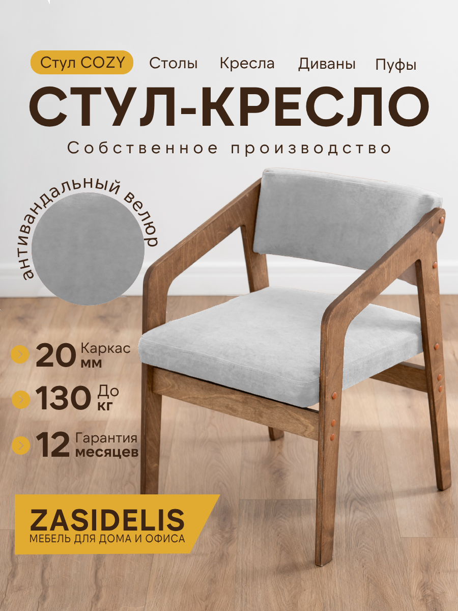 СохранитьСтул ZASIDELIS кози мягкий для кухни дома и офиса светло серый/коричневый, велюр, 52х58х72 см, до 130 кг интересное: