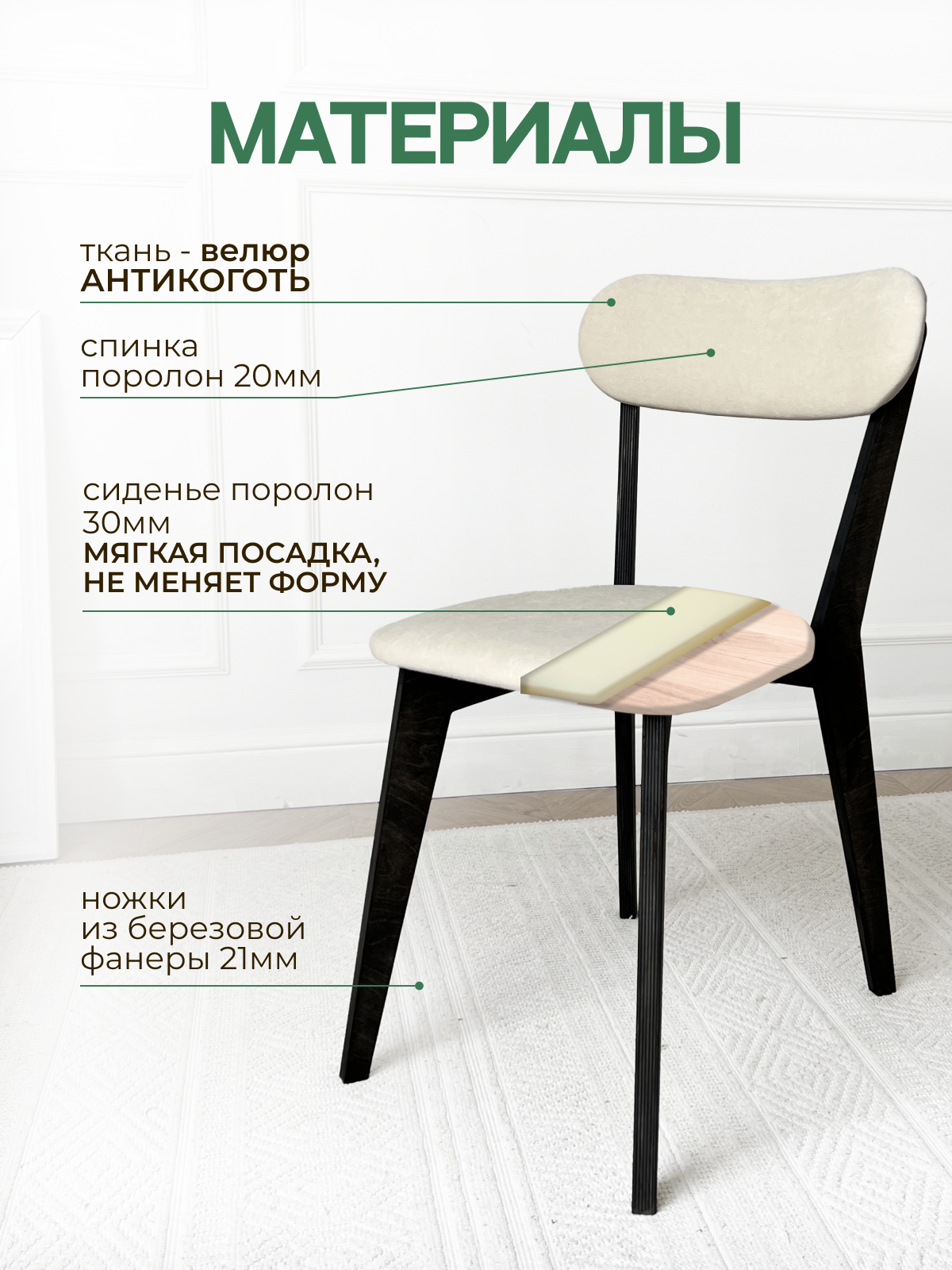СохранитьСтулья для кухни SAYMAN 2 шт, деревянные со спинкой, Бежевый велюр интересное: