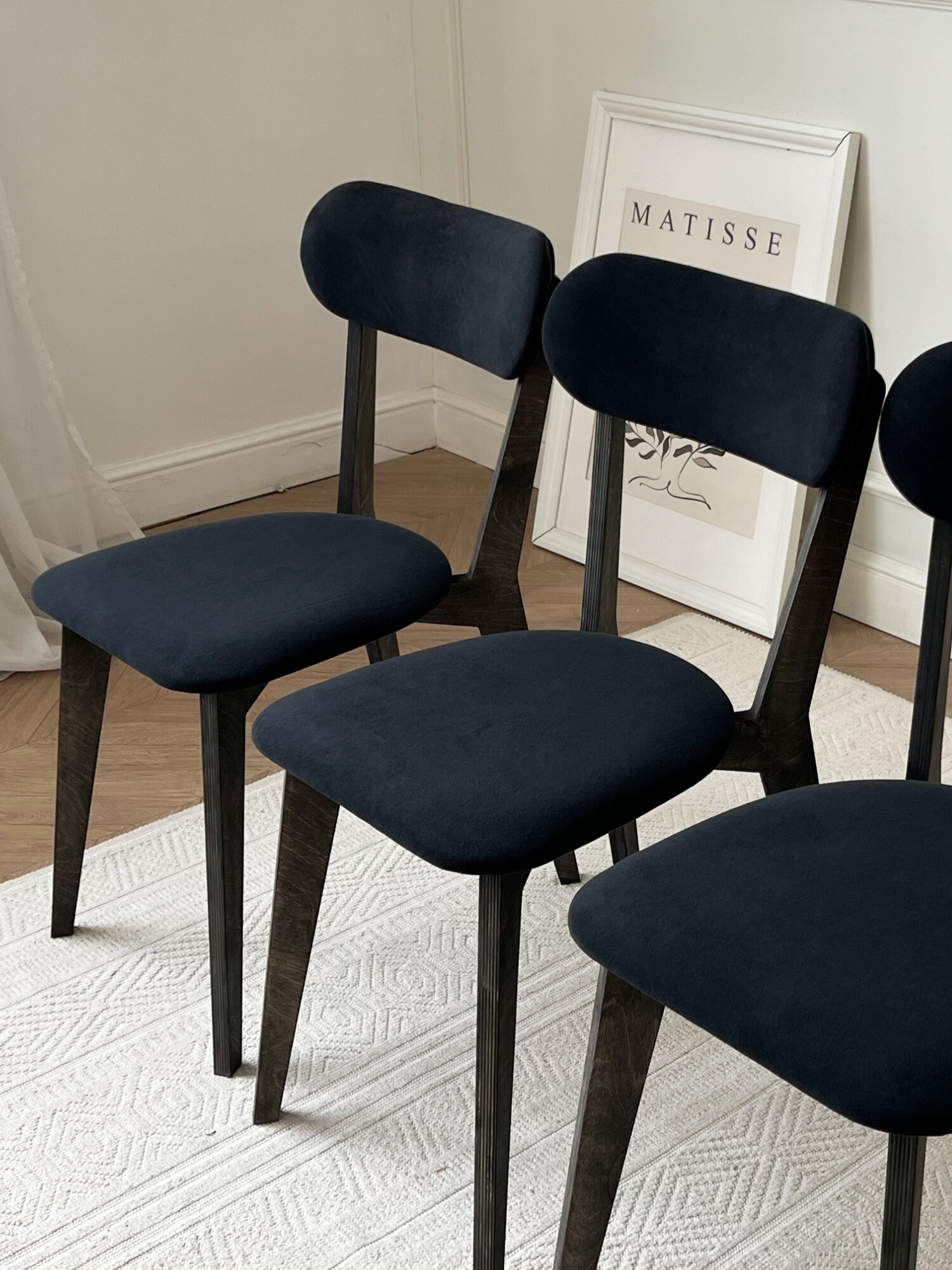 Стулья для кухни SAYMAN 4 шт, деревянные со спинкой, Синий велюр