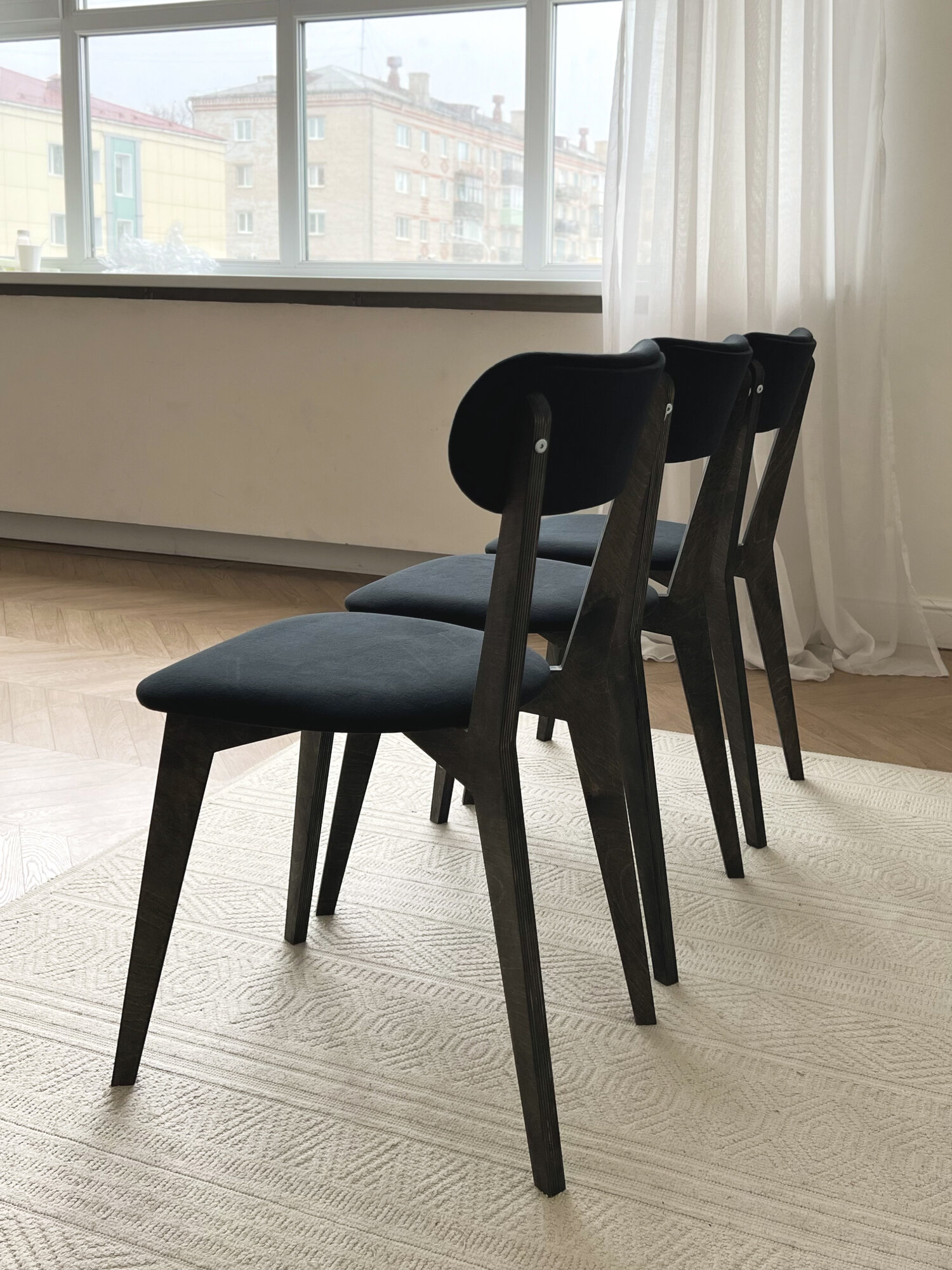 Стулья для кухни SAYMAN 3 шт, деревянные со спинкой, Черный велюр