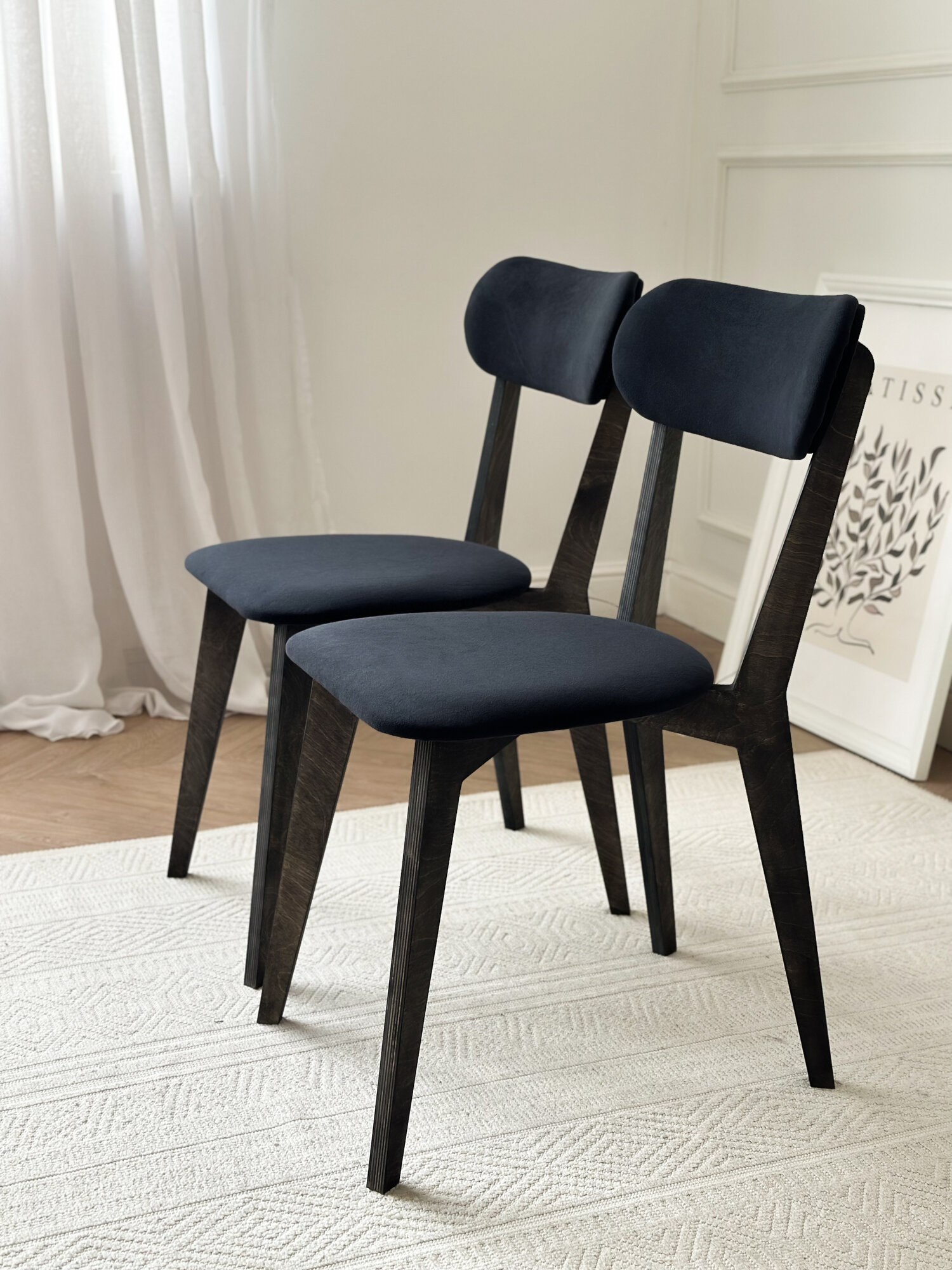 Стулья для кухни SAYMAN 2 шт, деревянные со спинкой, Синий велюр