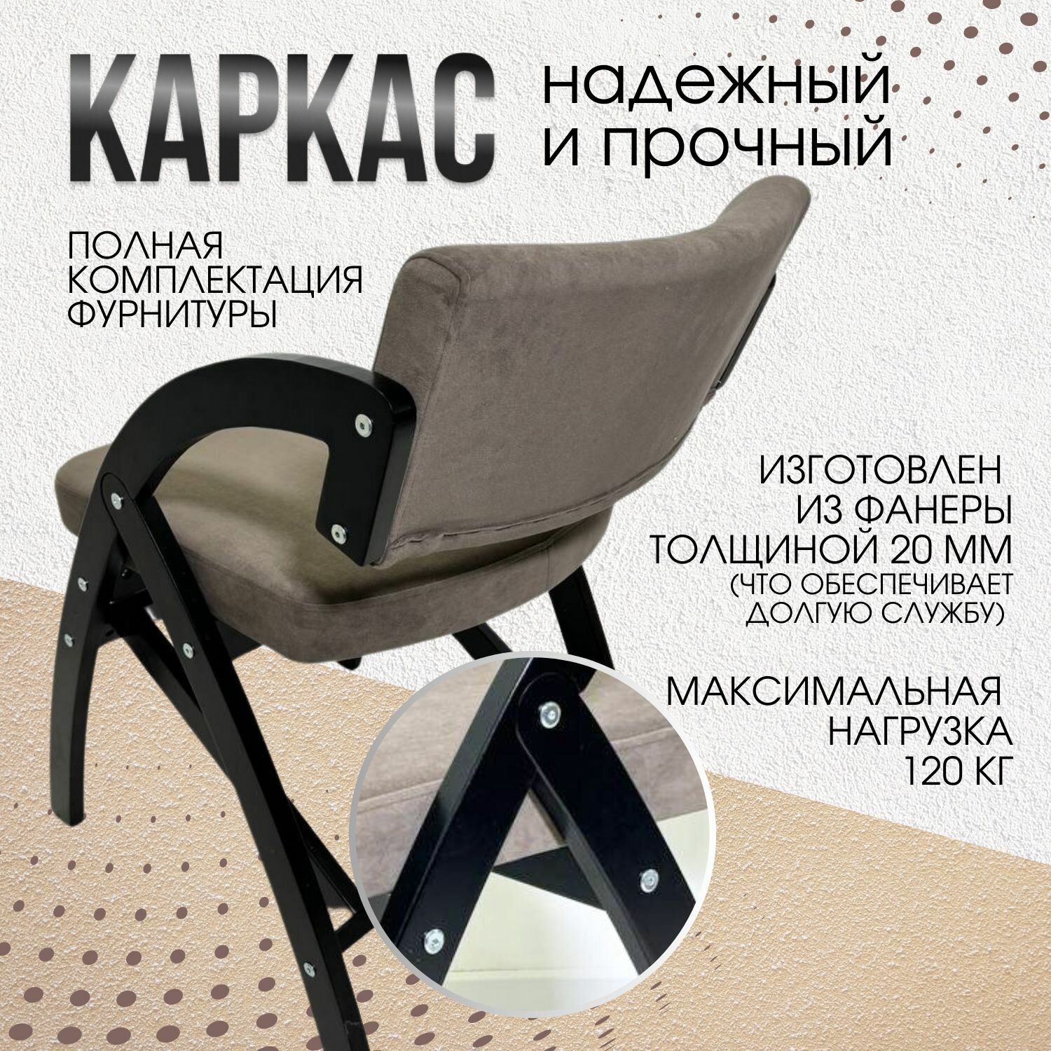 Стул-кресло Аврора 50х52х76, серо-коричневый, велюр, мягкое сиденье с подлокотниками