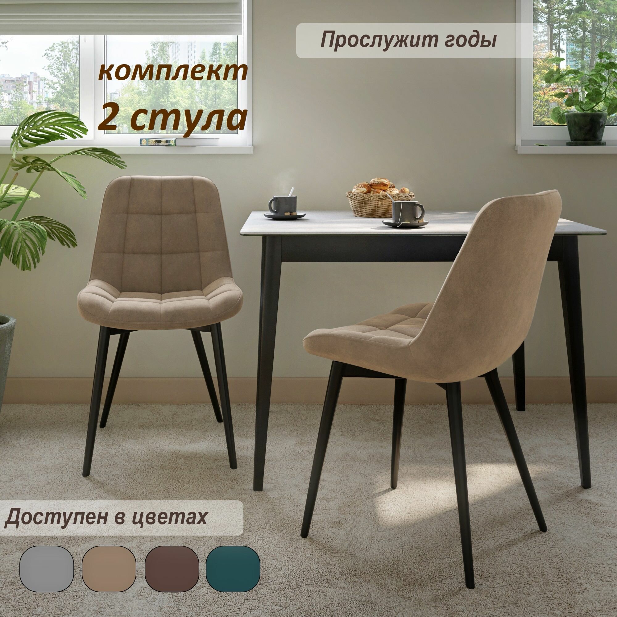 Комплект (2 шт) стульев для кухни обеденных мягких с боковой поддержкой Суше велюр бежевый Newtone интересное: