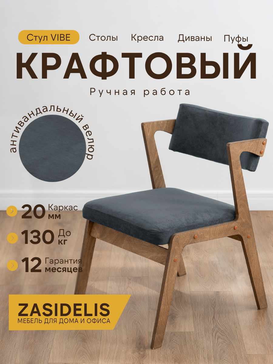 Ниже Вы можете прочитать отзывы на Стул ZASIDELIS вайб мягкий для кухни дома и офиса темно серый/коричневый, из велюра, 70х52x77 см, до 130кг, ознакомится с подробными характеристиками, посмотреть интересные обзоры и фотографии на Стул ZASIDELIS вайб мягкий для кухни дома и офиса темно серый/коричневый, из велюра, 70х52x77 см, до 130кг.