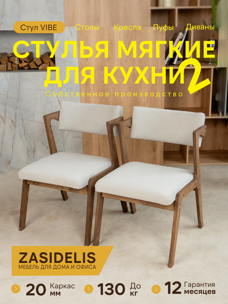 Стулья ZASIDELIS ВАЙБ мягкие для кухни дома и офиса молочный/коричневый, из велюра, 570х52x77 см, до 130кг