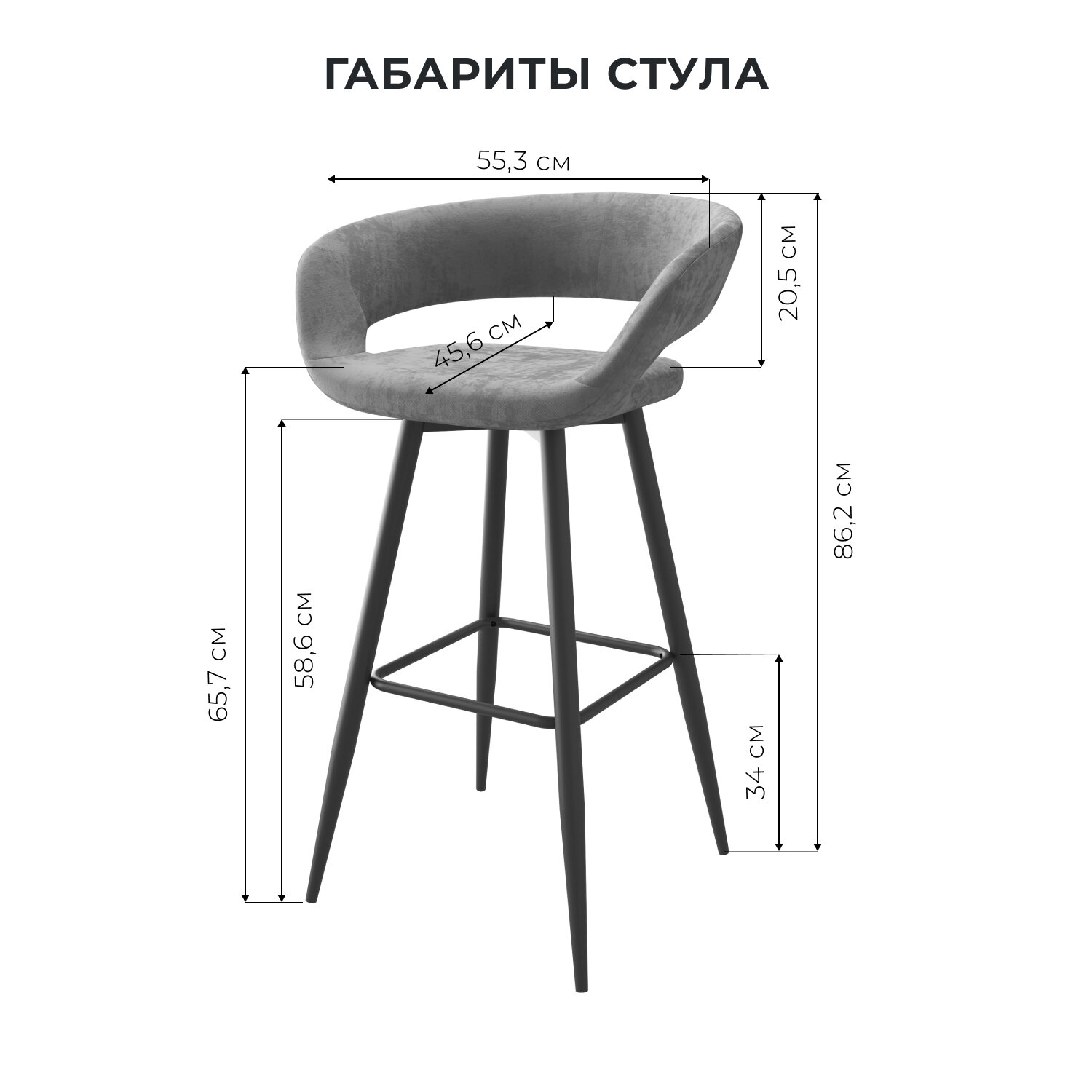 Комплект полубарных стульев Мамадома Барни Р 700 поворотный металл Чёрный/ Ткань GREY LUX b22, ткань велюр LUX, 4 шт