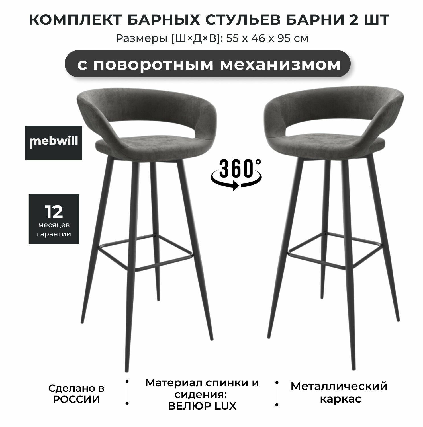 Комплект полубарных стульев Мамадома Барни Р 700 поворотный Чёрный/Antracite Lux b28 ткань велюр LUX, 2 шт