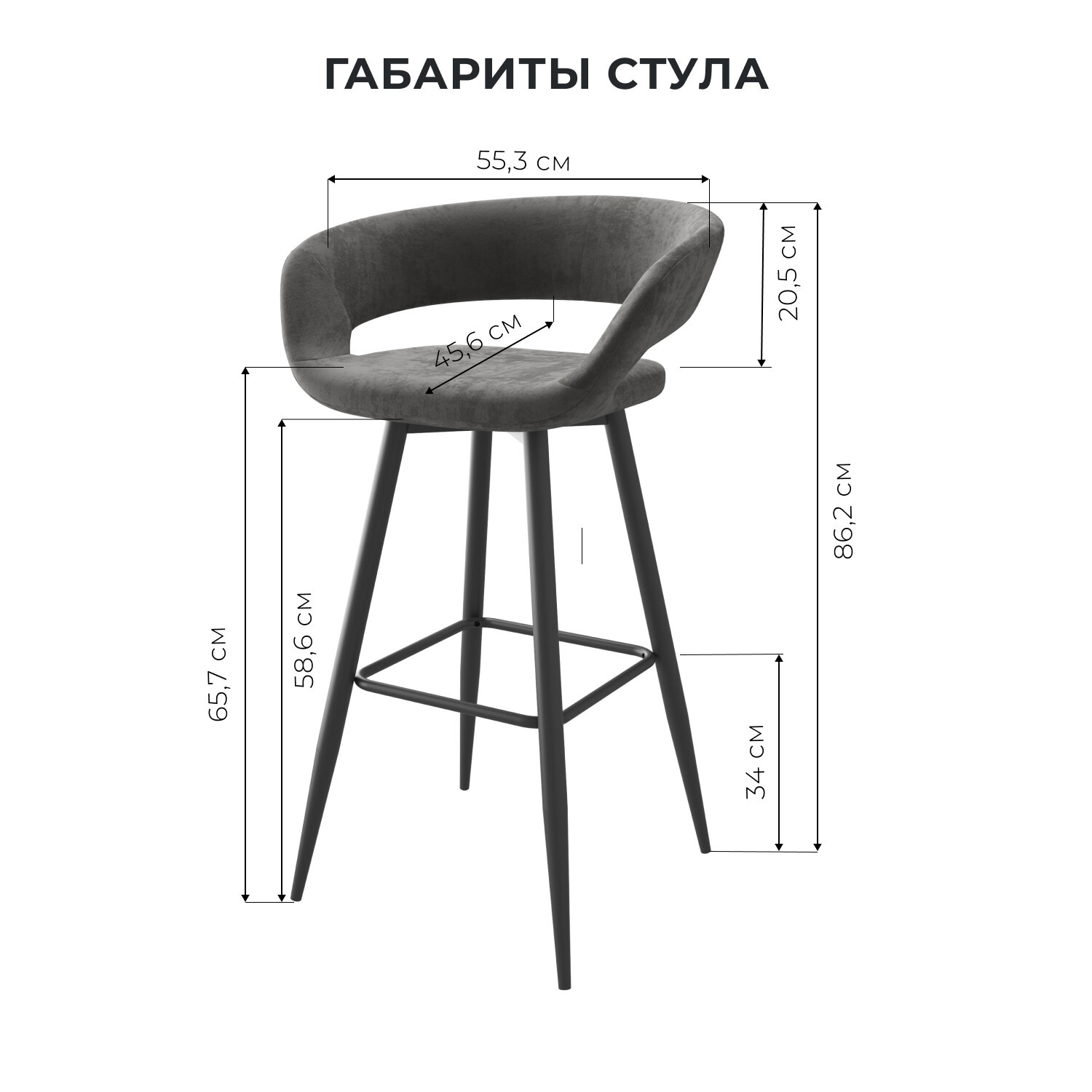 Комплект полубарных стульев Мамадома Барни Р 700 поворотный металл Чёрный/ Ткань GREY LUX b22, ткань велюр LUX, 2 шт