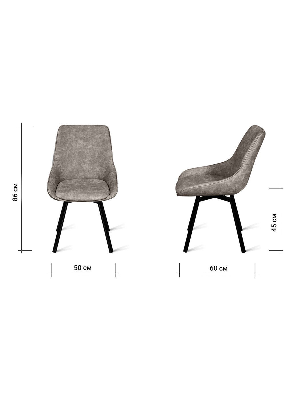 Стул B313-m COW GREY BK (2 шт.) с поворотным механизмом экокожа, 50х60х86 см (темно-серый/черные ножки)
