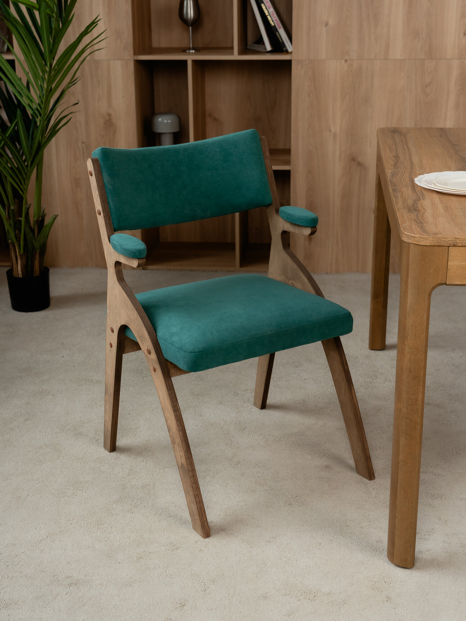 Стул ZASIDELIS УНИ мягкий для кухни дома и офиса изумрудный/коричневый, велюр, 56х65х84 см, до 130 кг