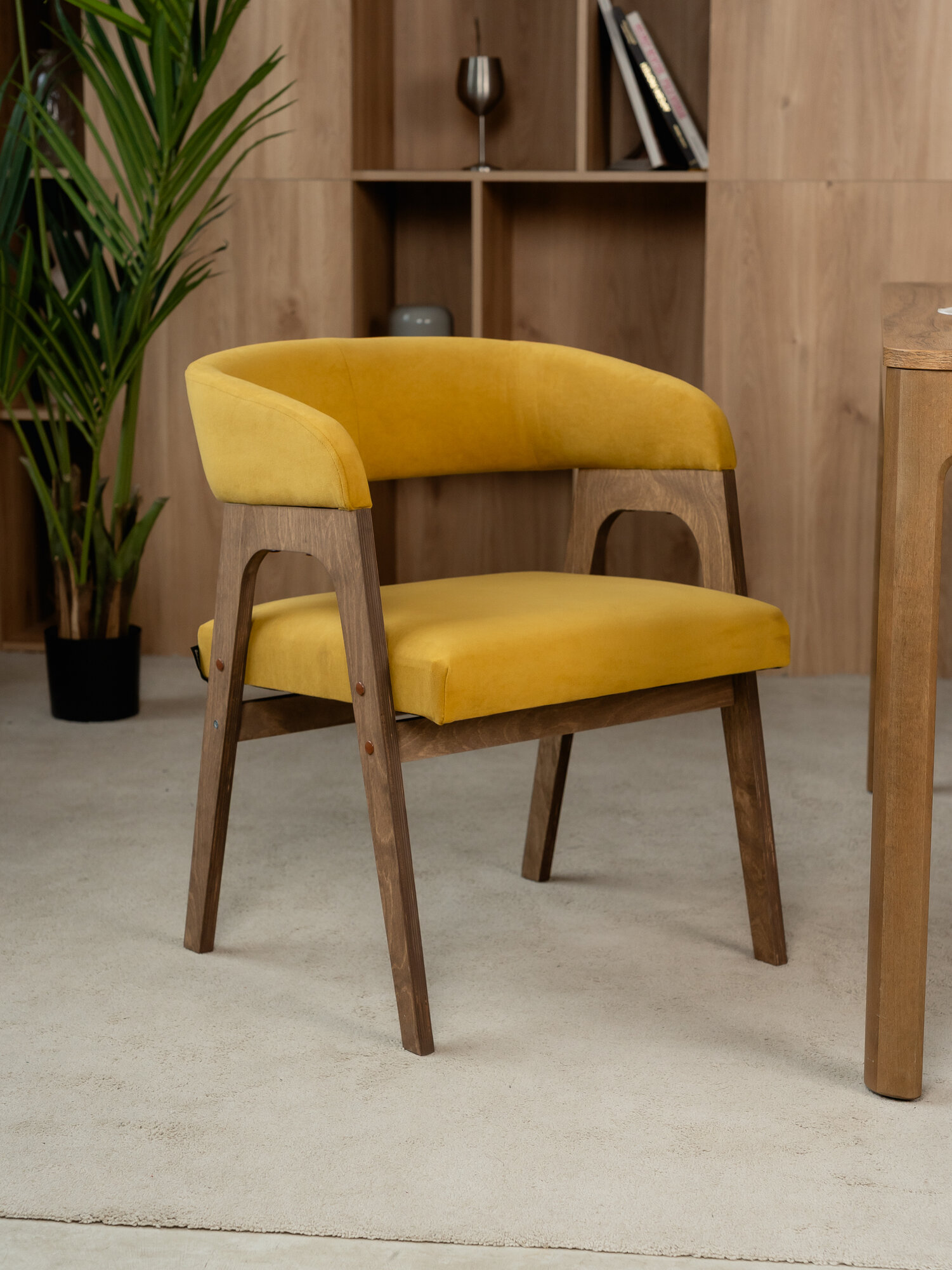 Стул кресло ZASIDELIS кайф мягкий для кухни дома и офиса горчичный/коричневый, из велюра, 63x56x72 см, до 130кг